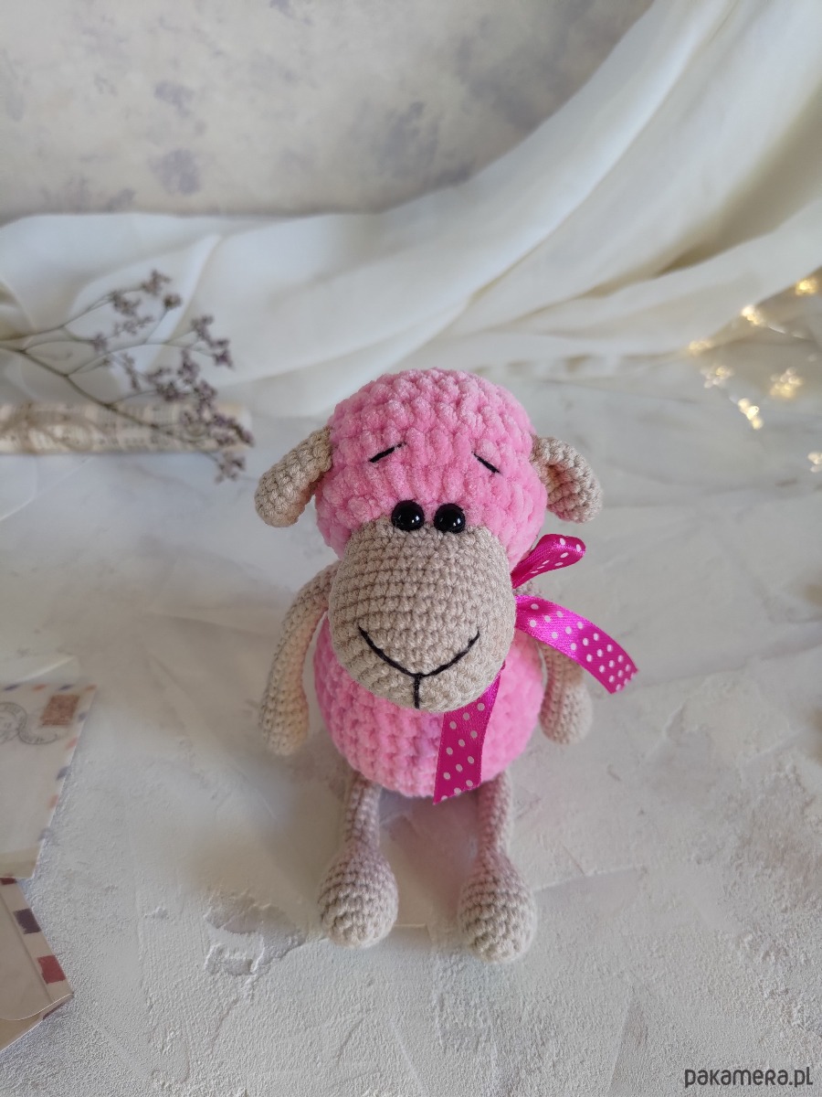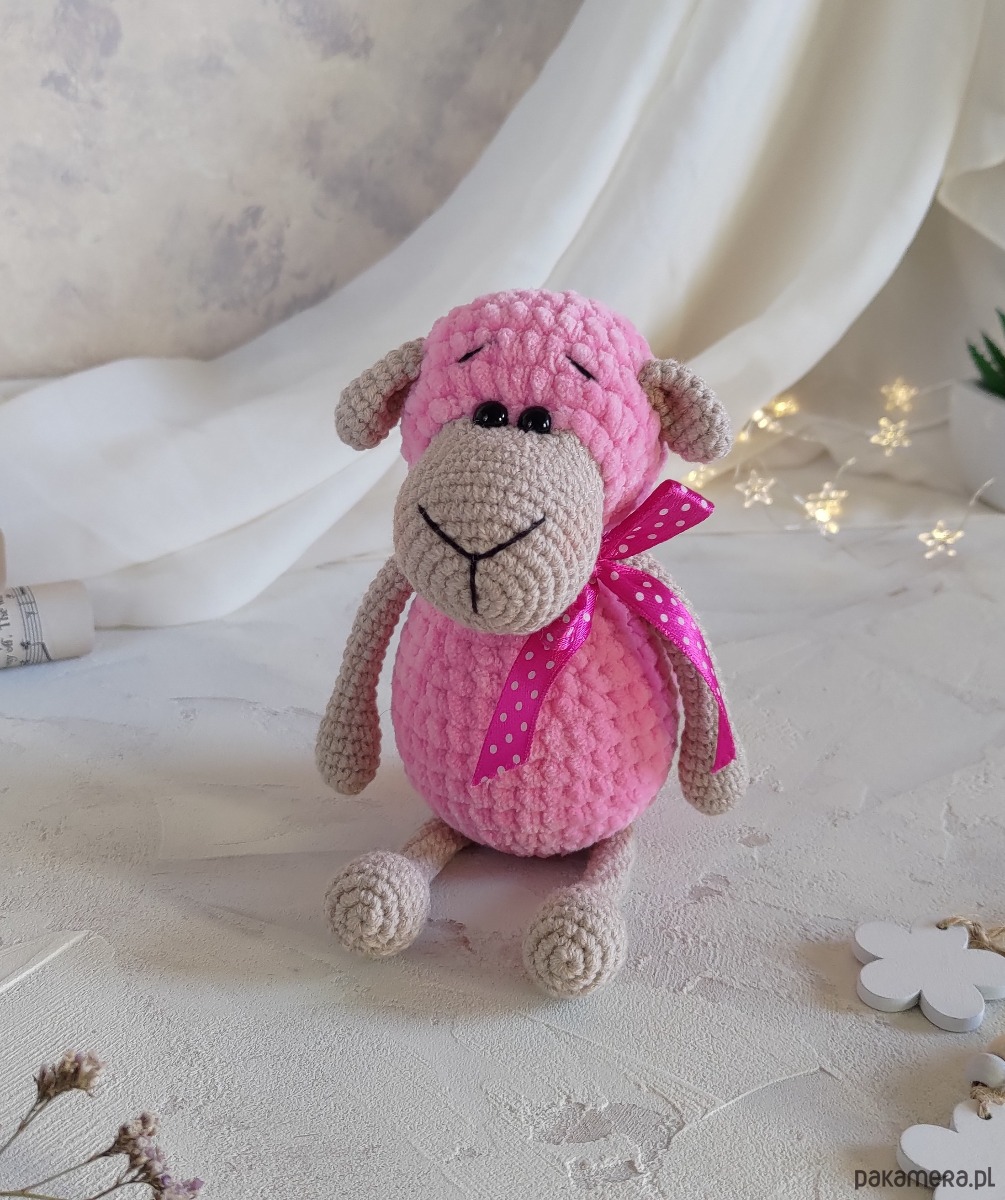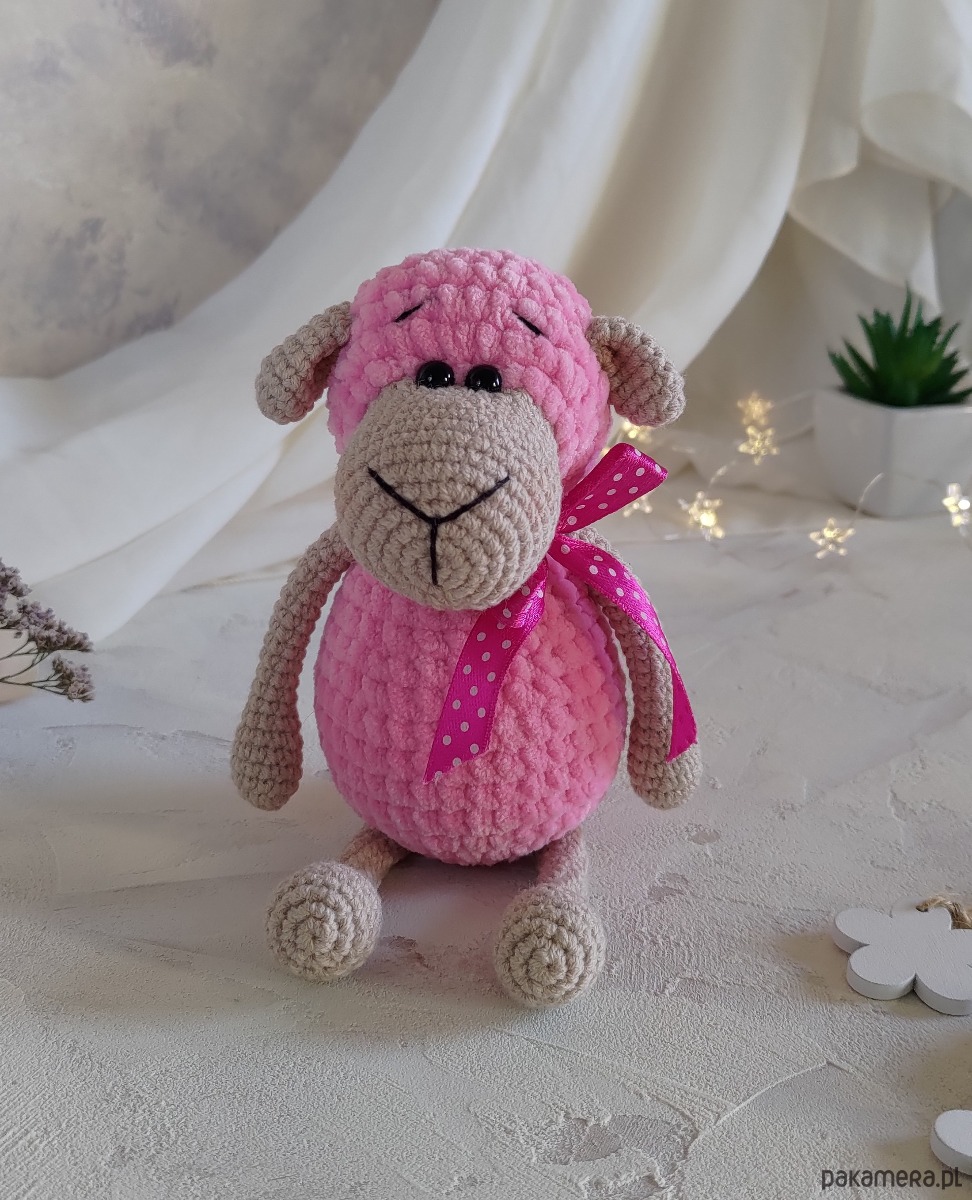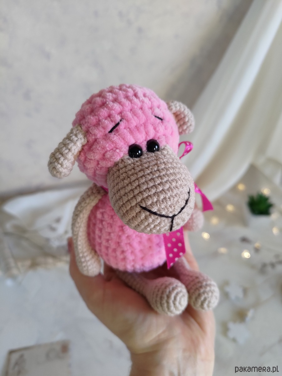 - Owieczka dostępna w cukierkowym różowym kolorze, ciało - beżowe.