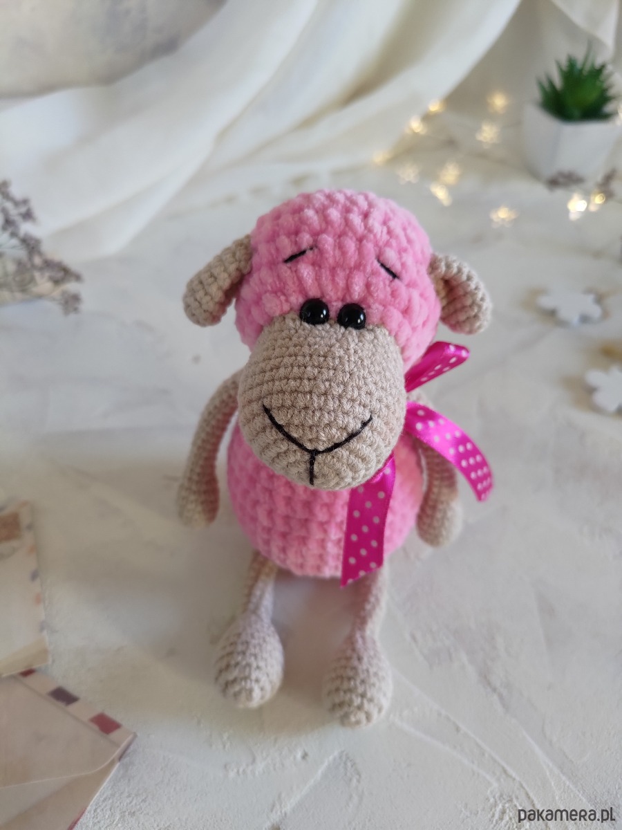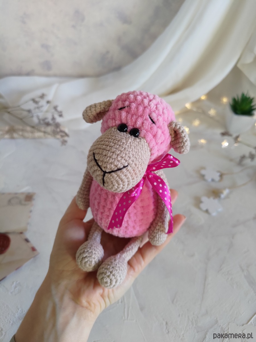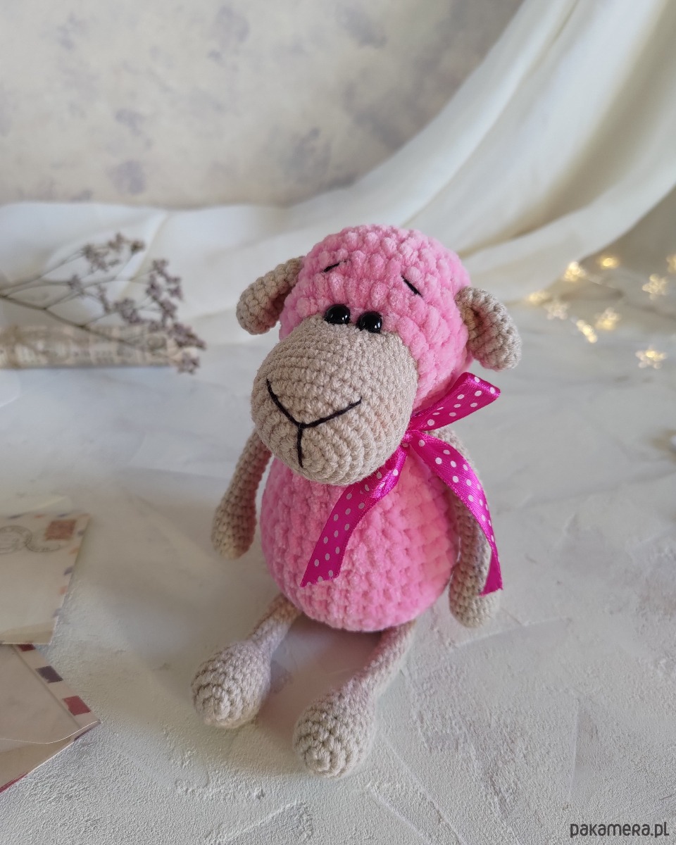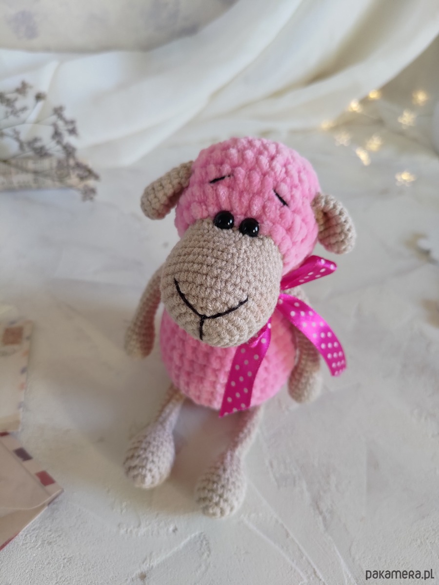- Owieczka dostępna w cukierkowym różowym kolorze, ciało - beżowe.