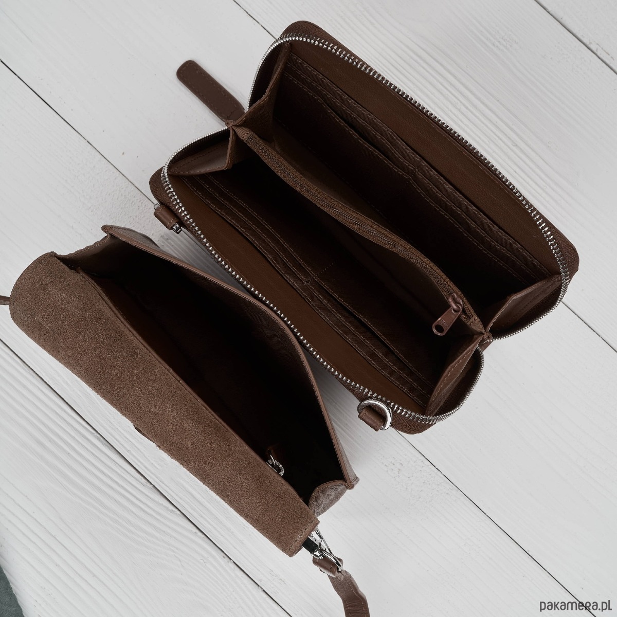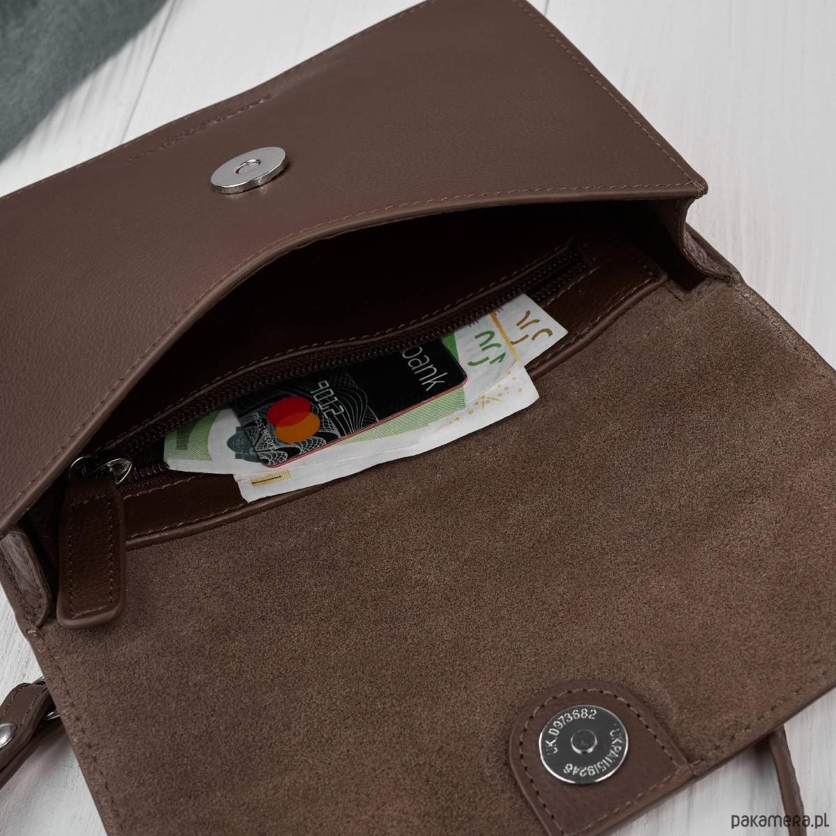 Główna część to elegancka, mała torebka damska zapinana na magnetyczny klips -idealna na co dzień. Drugi moduł to smukła kopertówka na zamek, pełniąca rolę praktycznego organizera. Dzięki magnetycznym klipsom możesz w kilka sekund połączyć oba elementy w jedną całość albo korzystać z nich niezależnie.