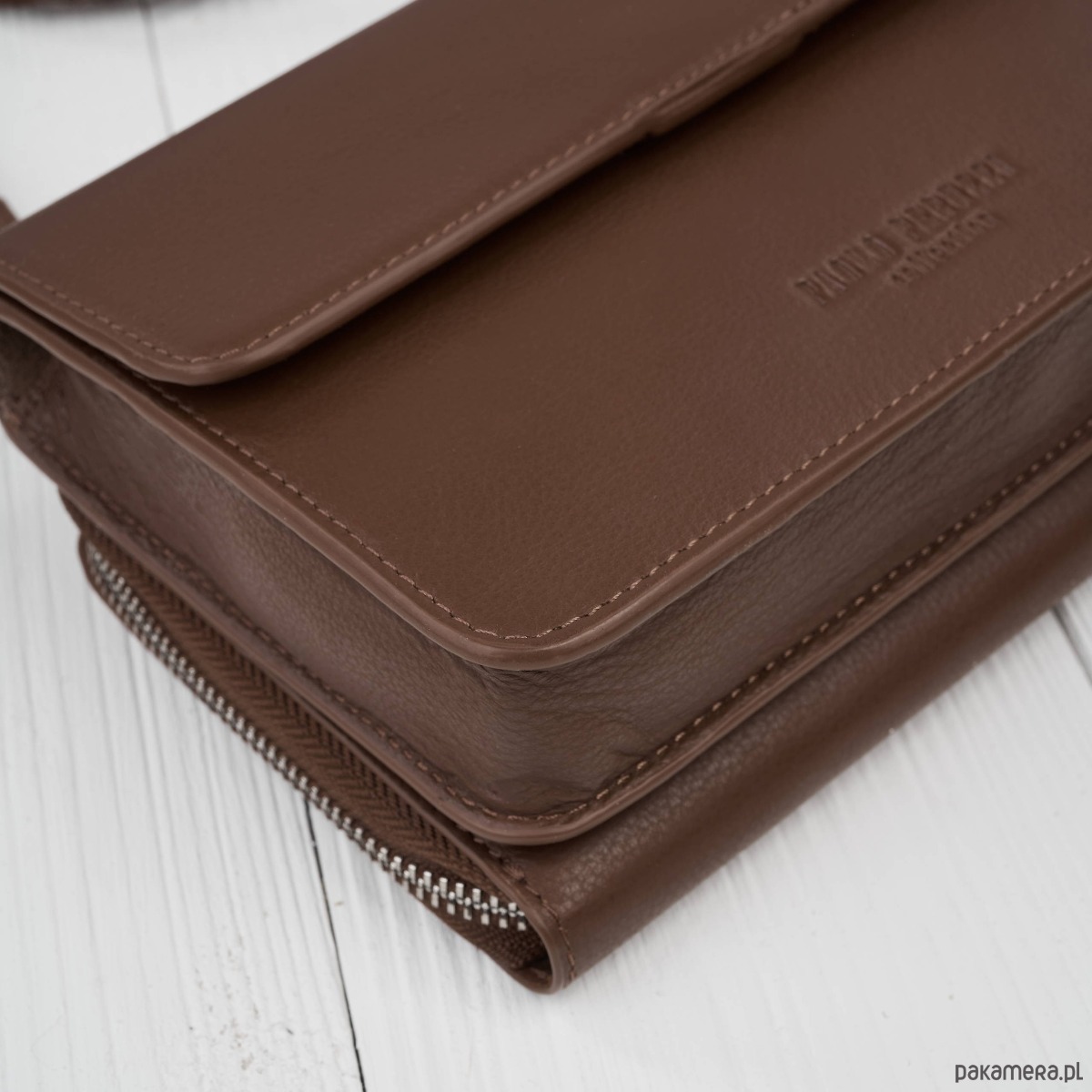 Odpinany, regulowany pasek skórzany (120 cm)Noś crossbody, na ramieniu lub w dłoni - pełna swoboda stylizacji.