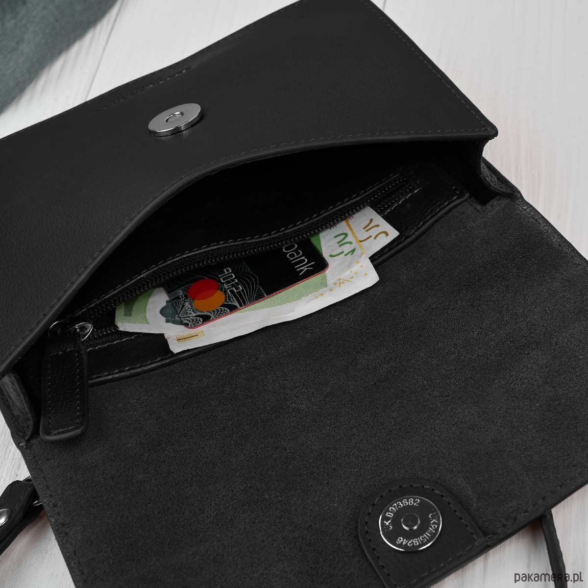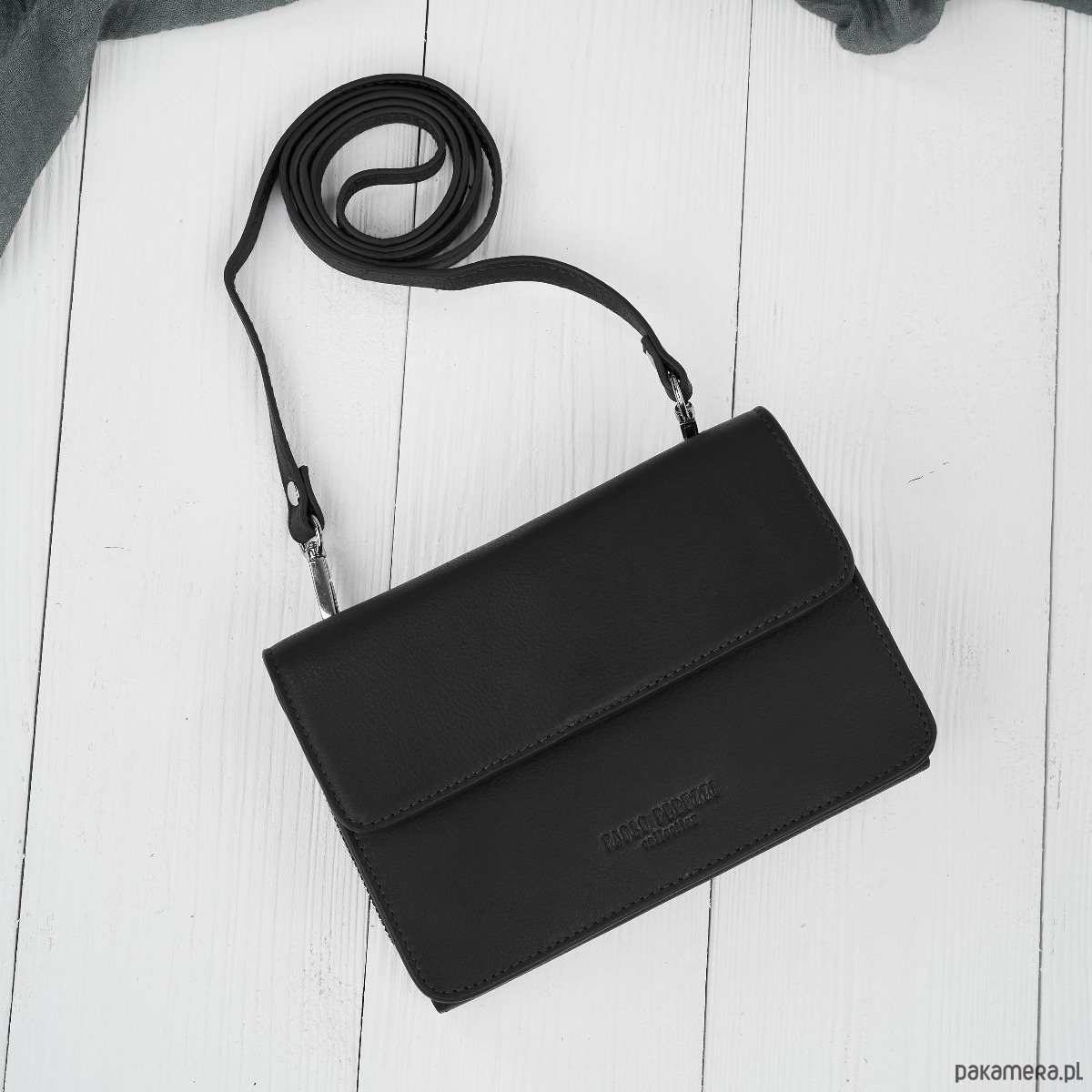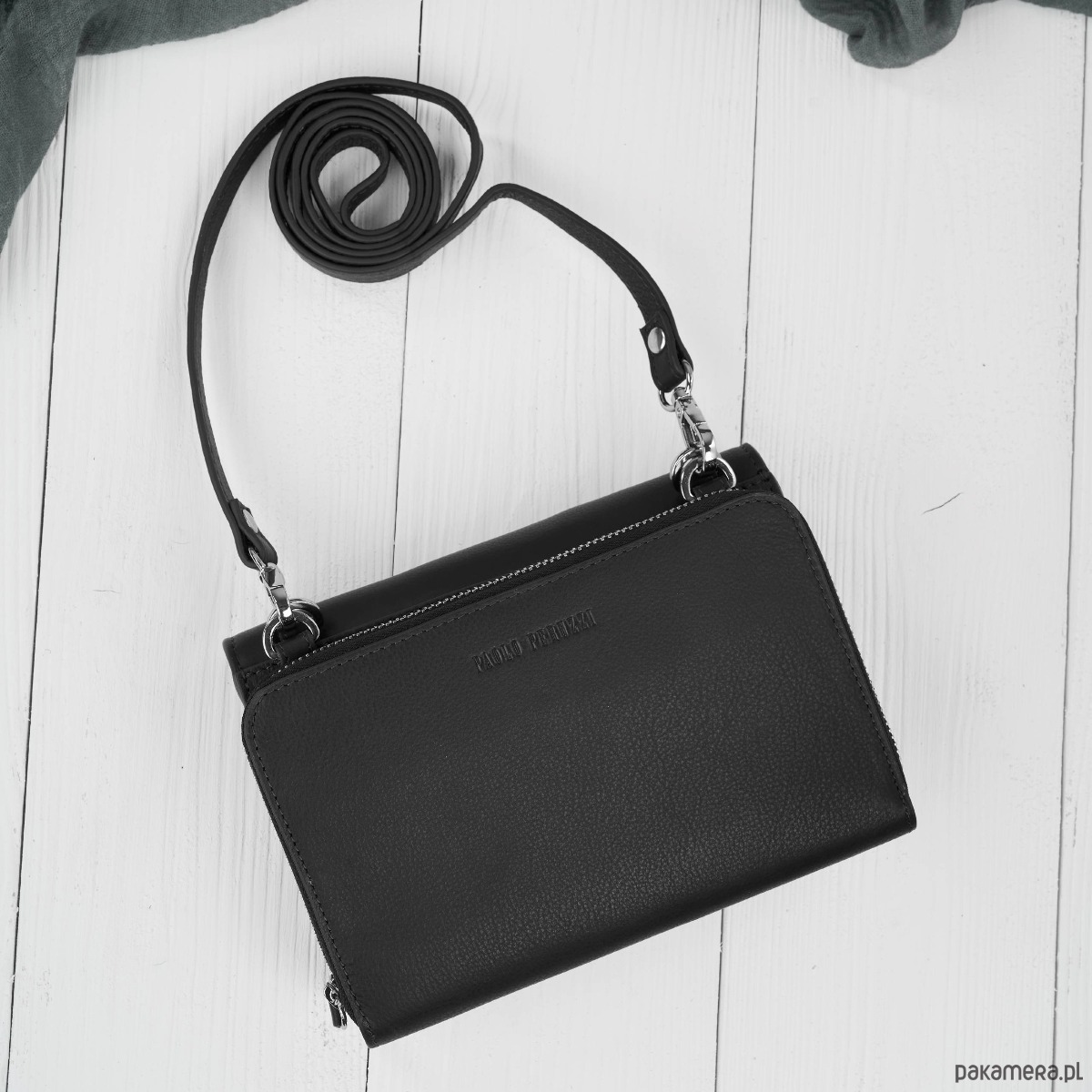 Mała torebka damska skórzana kopertówka 2w1 czarna AY-21-BL