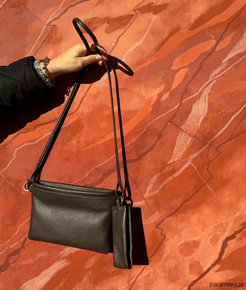 Mała torebka skórzana w kolorze brązowym, do noszenia na różne sposoby