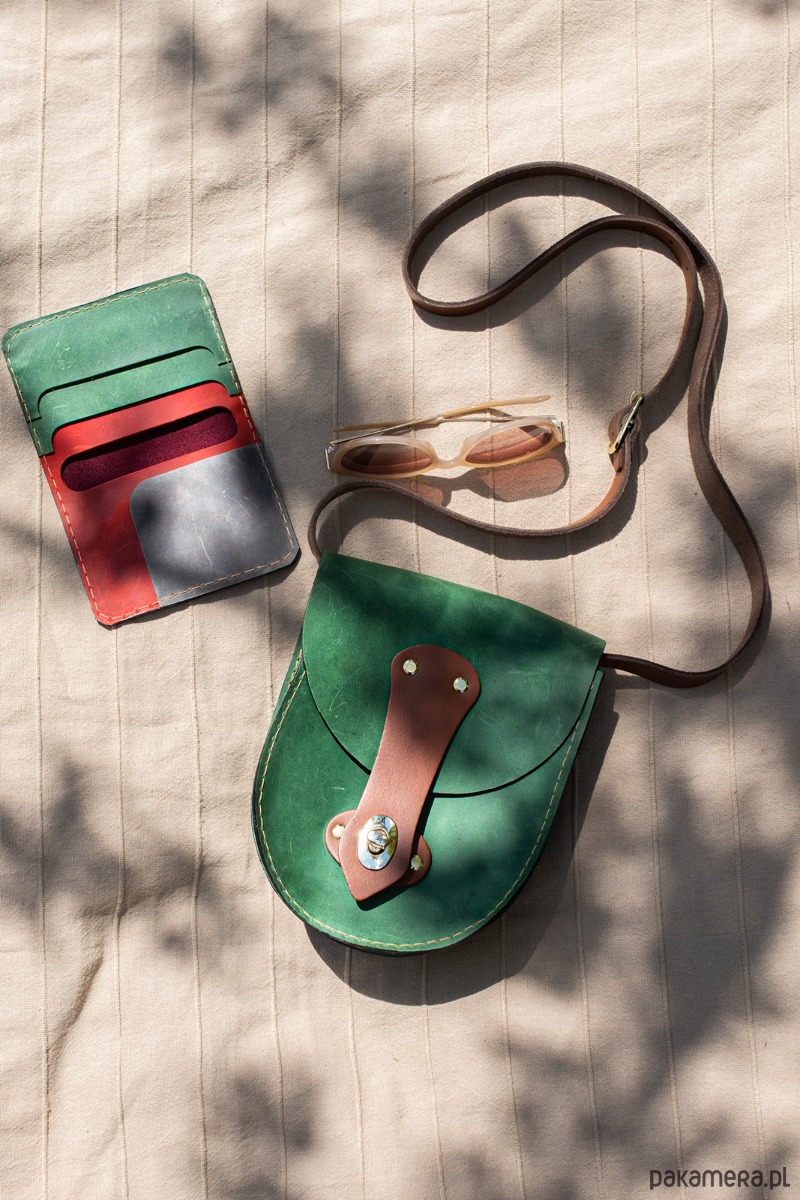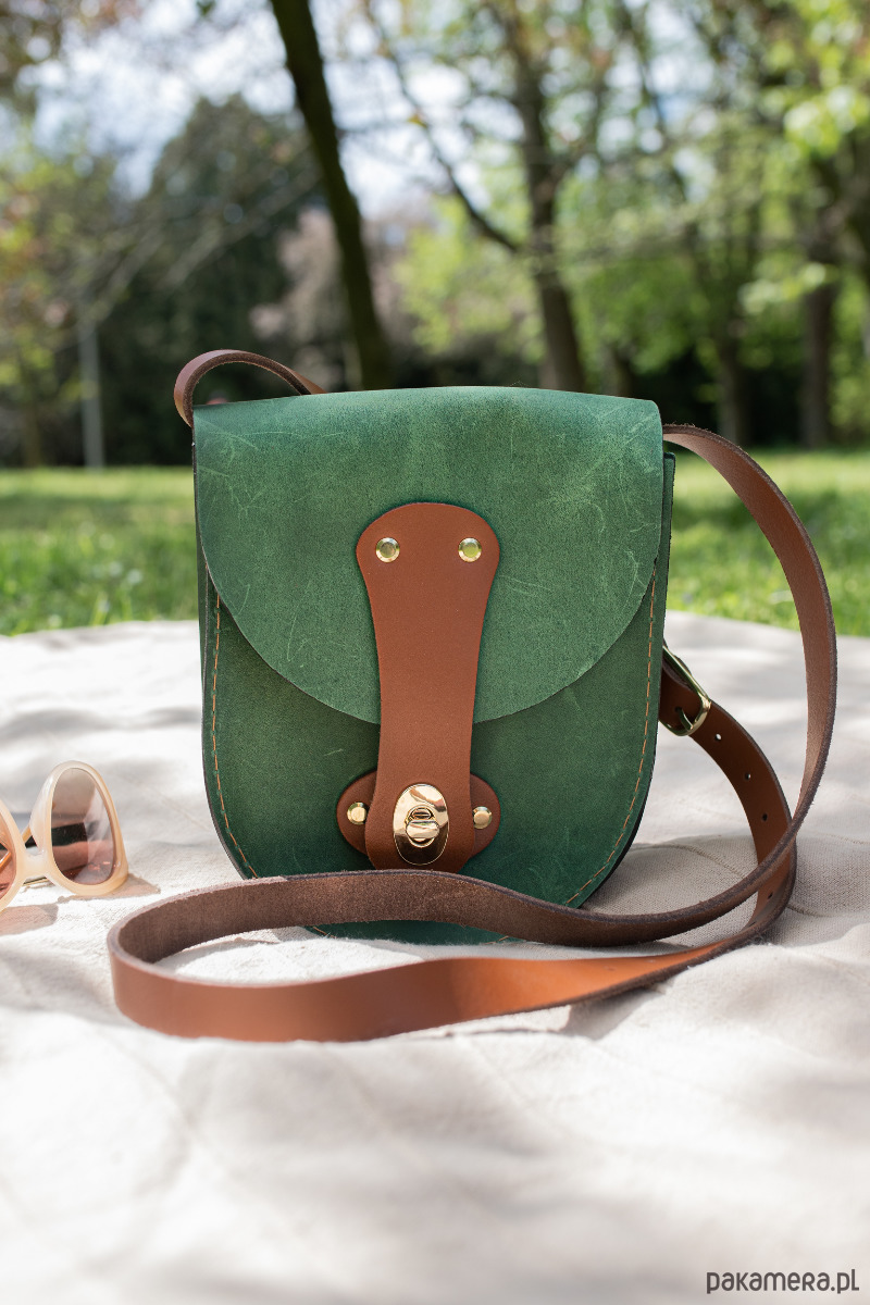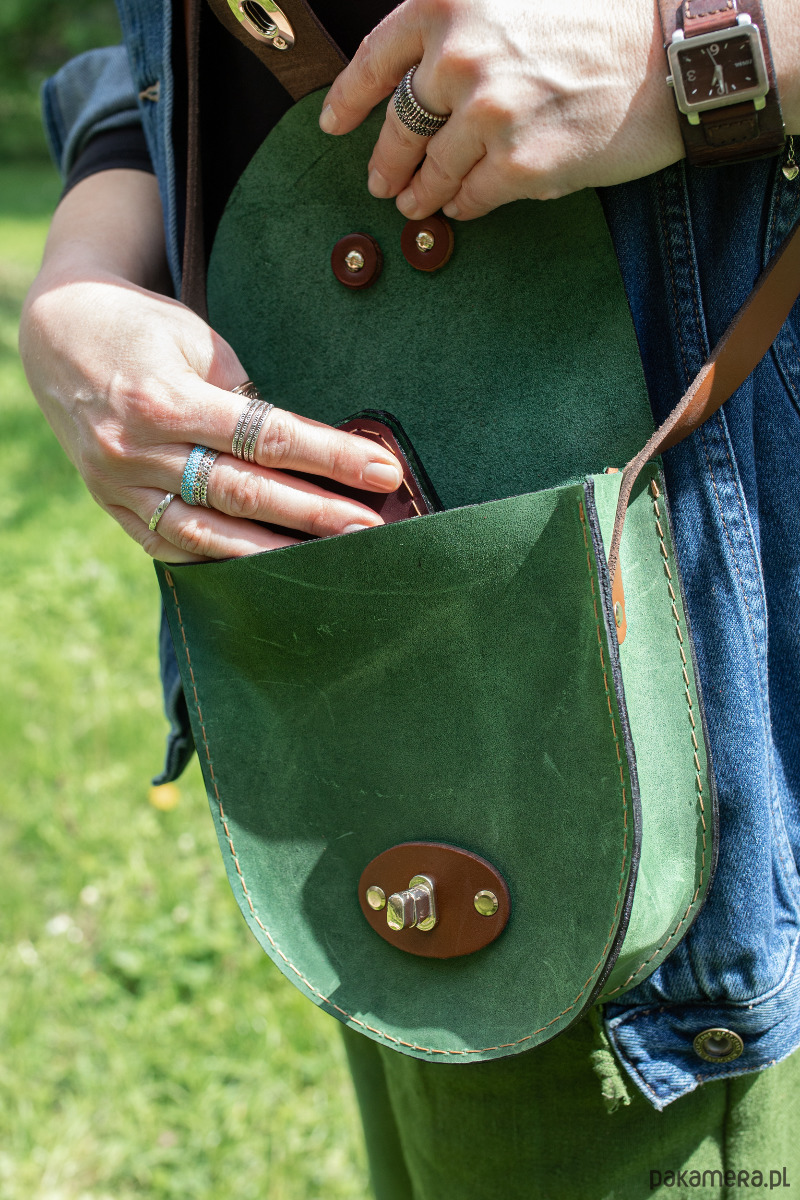 Mała torebka skórzana zielona, torebka mini , poręczna torebka
