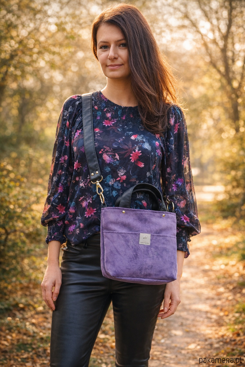 Mała torebka z kieszeniami z Fioletowego Zamszu