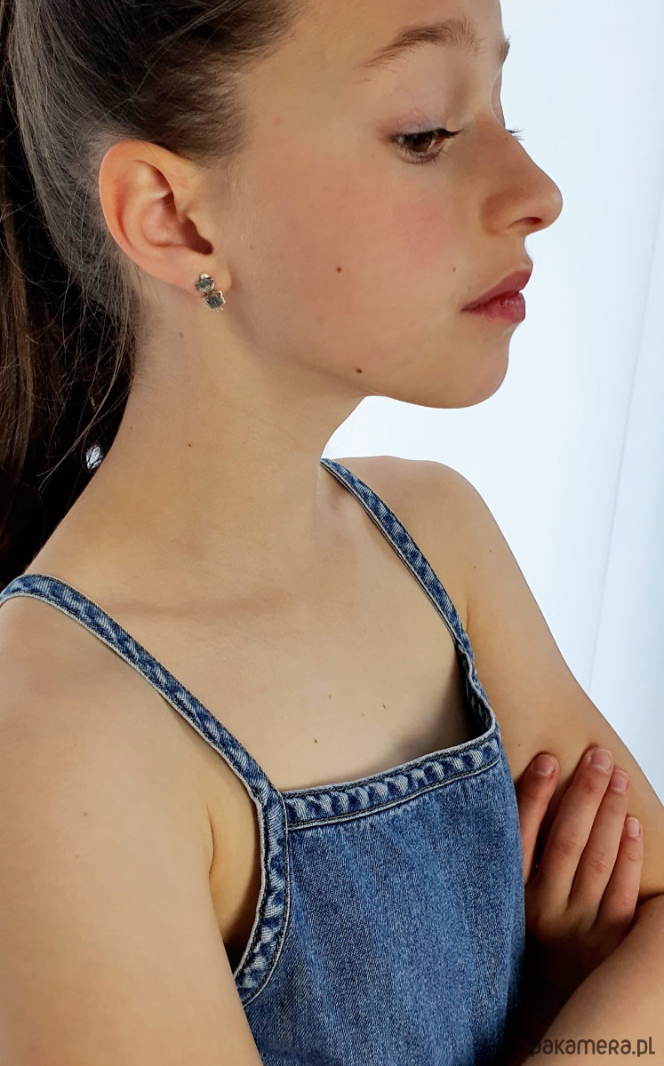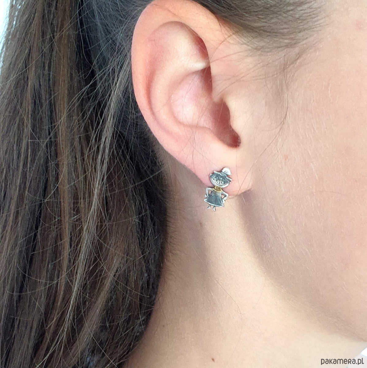 Te drobne kolczyki to małe srebrne złośnice(wykonane ze srebra próby 925), które z figlarnym wdziękiem dodają uroku każdej stylizacji! Każda „Mała Złośnica” przedstawia sympatyczną dziewczynkę z rozczulającym kucykiem, która z przymrużeniem oka przywołuje wspomnienia o dziecięcych psotach. Wykończone delikatną oksydą w odcieniu szarości i ozdobione maleńkim złotym naszyjnikiem, te kolczyki subtelnie błyszczą i dodają charakteru – to biżuteria, która bawi się z konwencjami i zaprasza do uśmiechu.