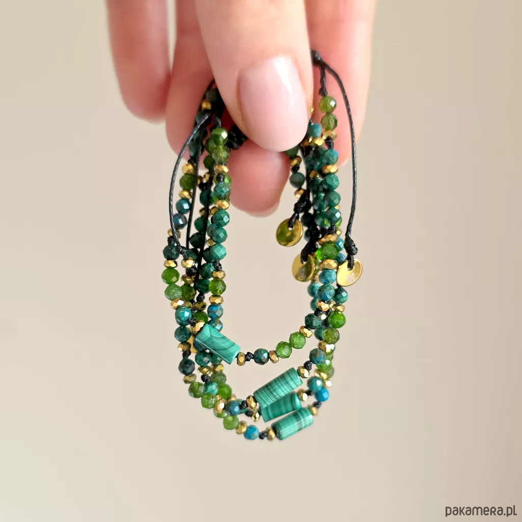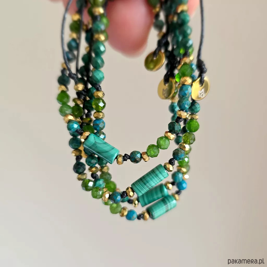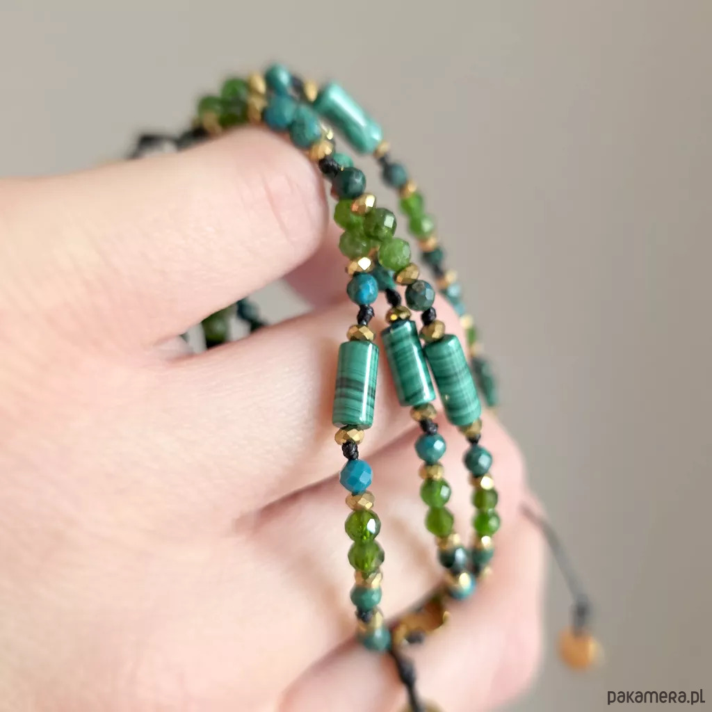 Malachit, diopsyd, chryzokola, hematyt bransoletka na sznurku