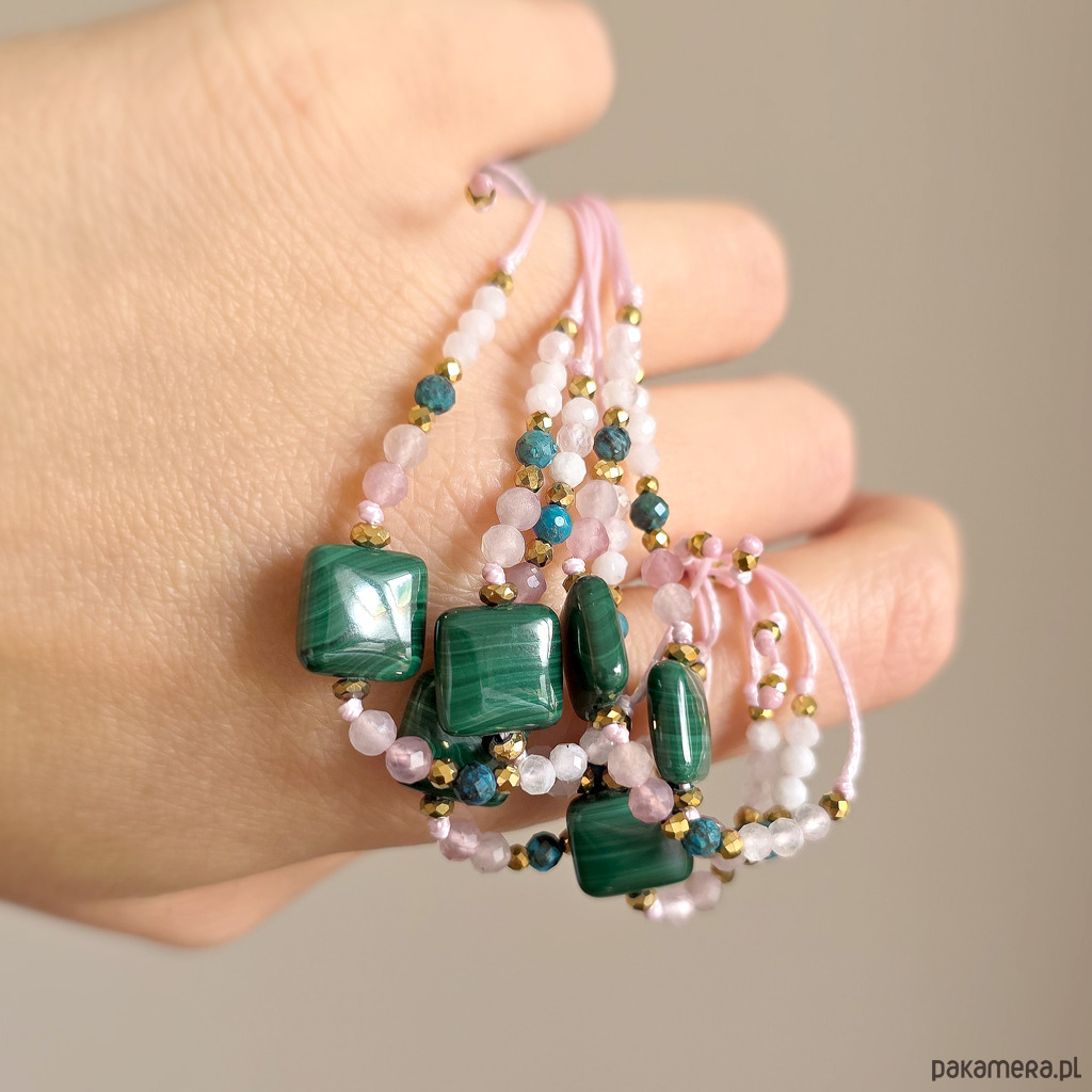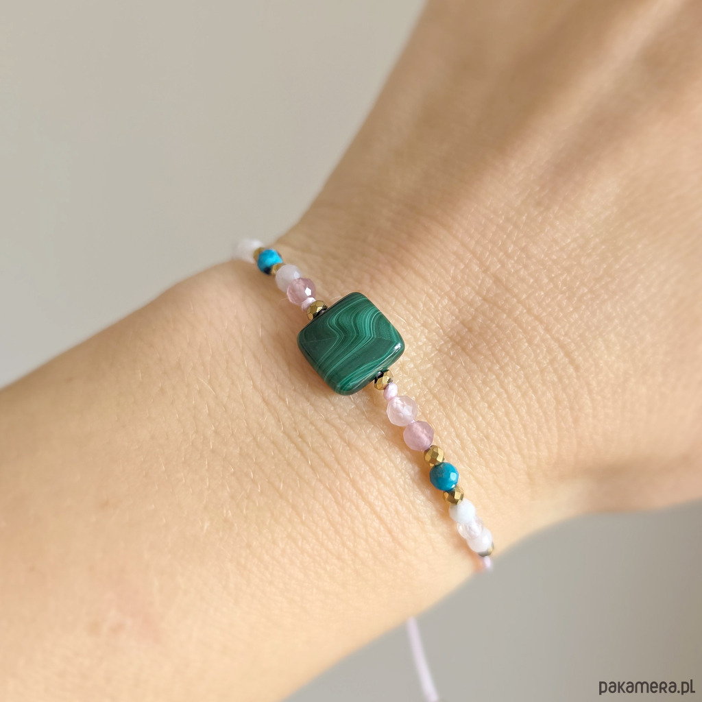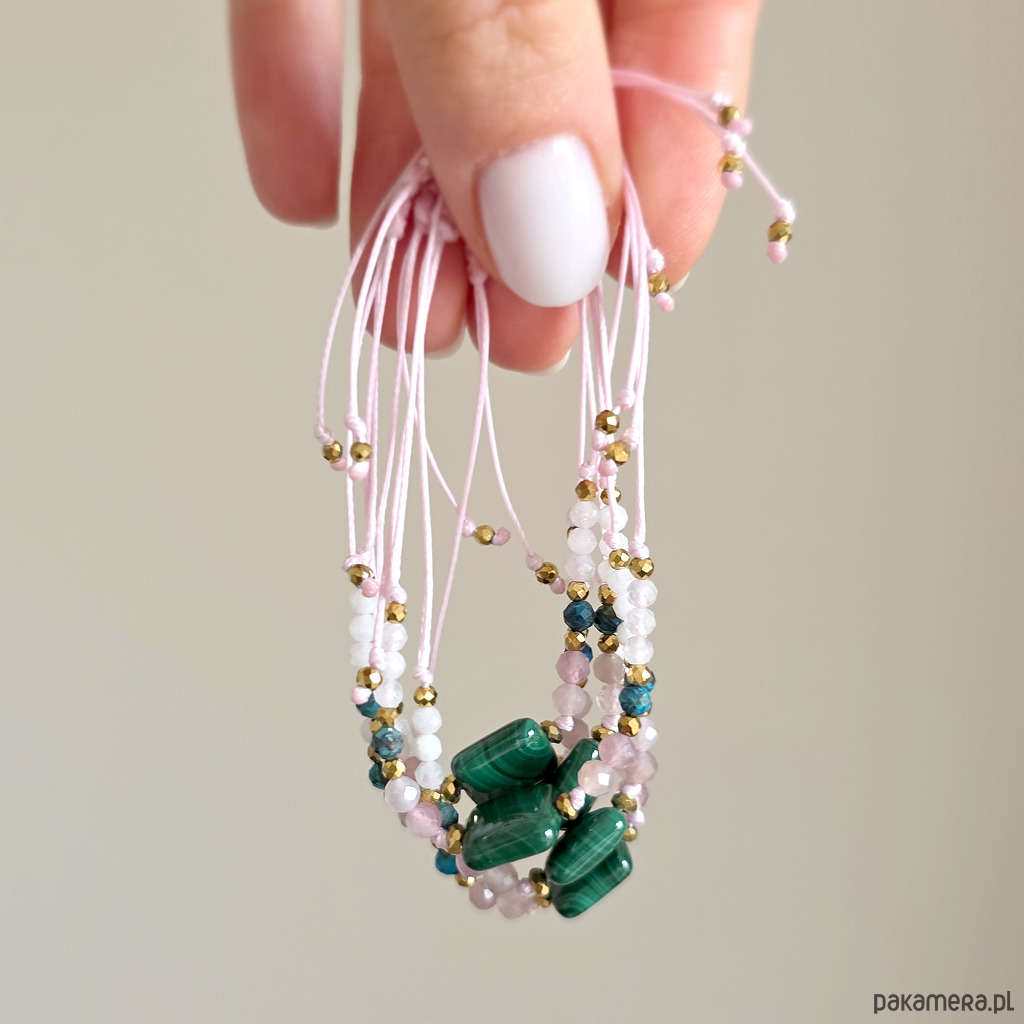 Malachit, kwarc różowy, chryzokola, kamień księżycowy, bransoletka