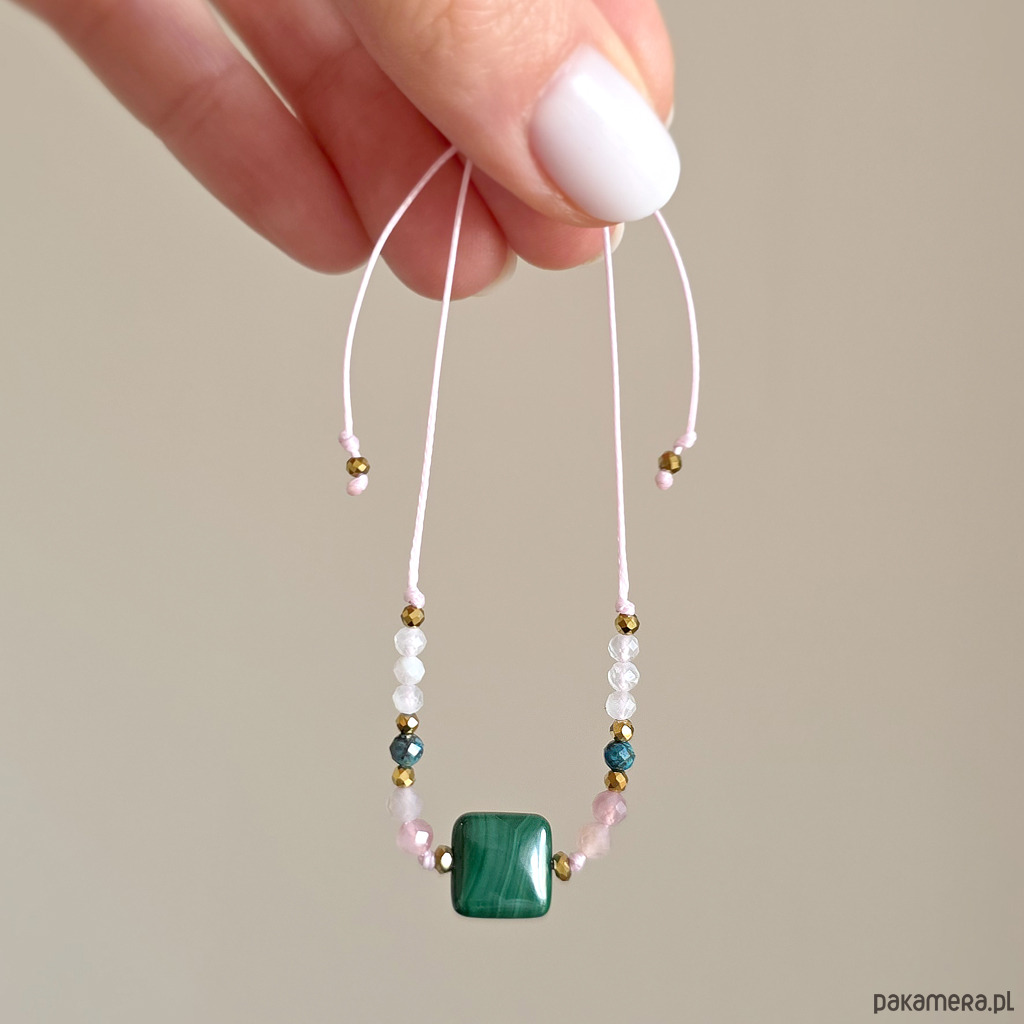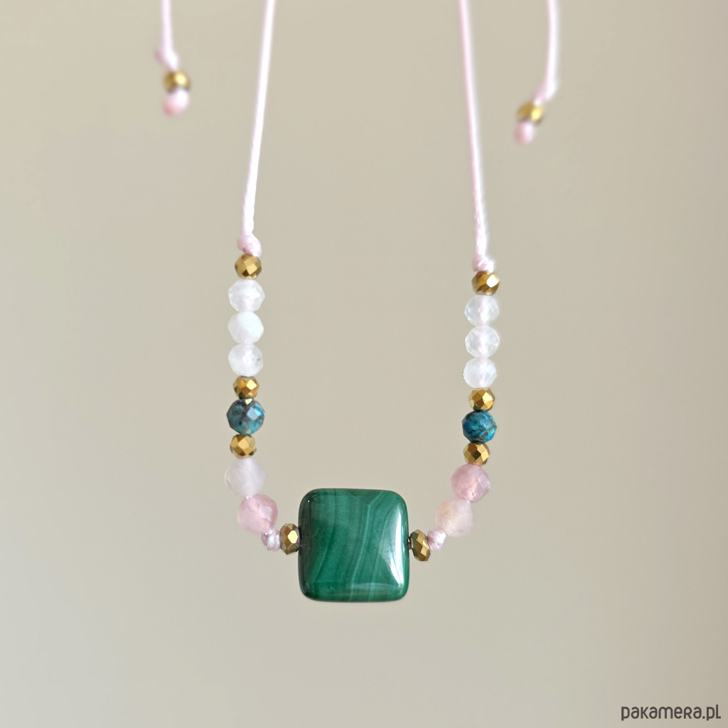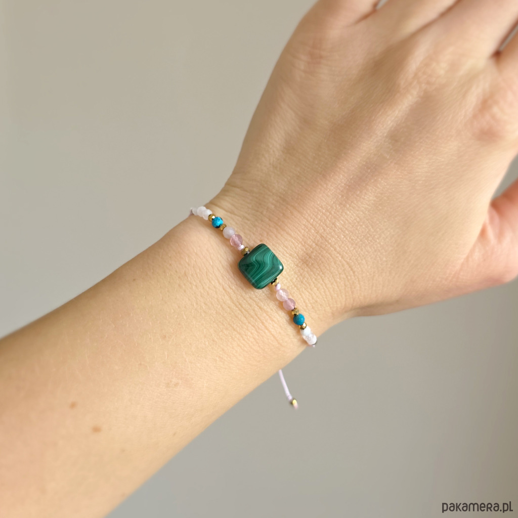 Malachit, kwarc różowy, chryzokola, kamień księżycowy, bransoletka