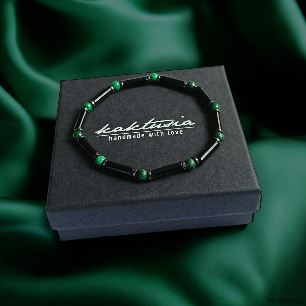 MALACHIT, onyks : MIŁOŚĆ, ZMIANY, SIŁA : delikatna bransoletka