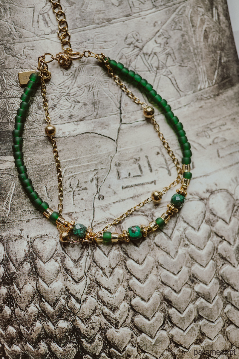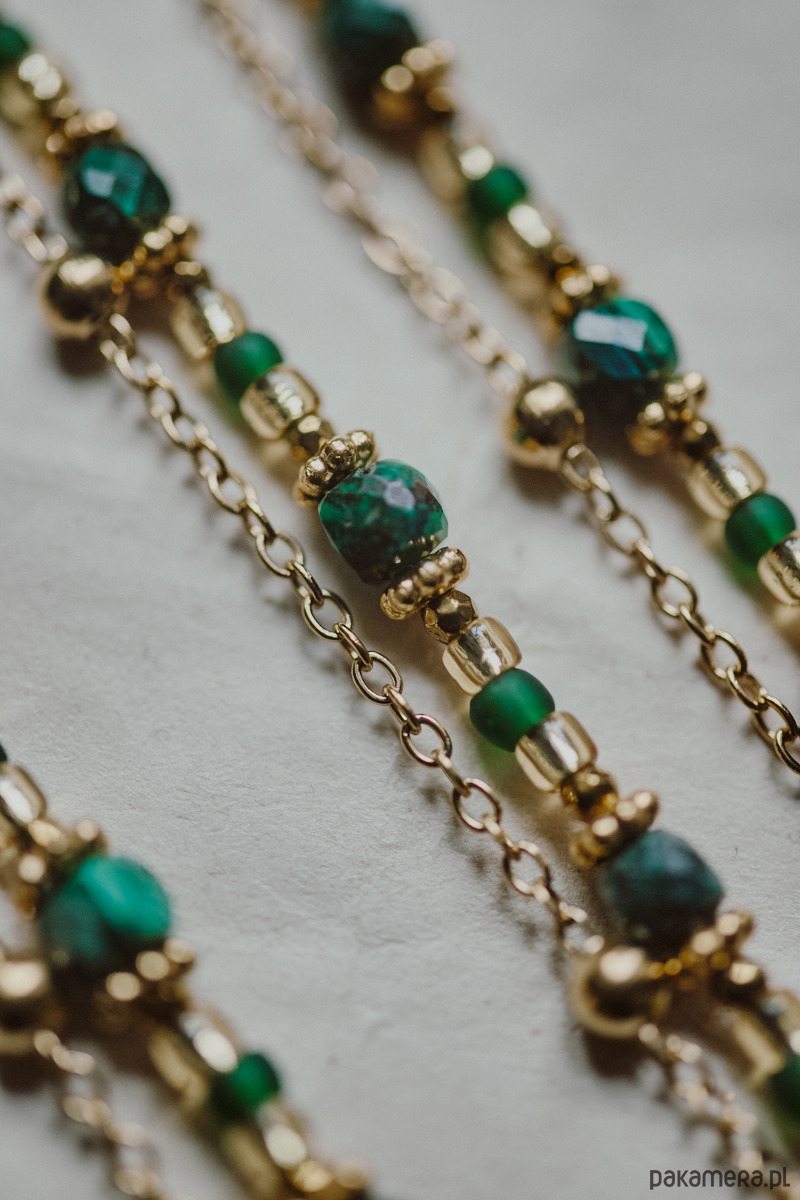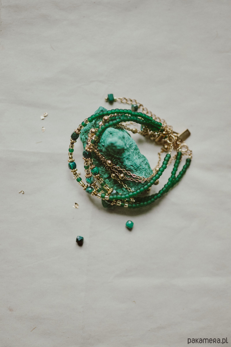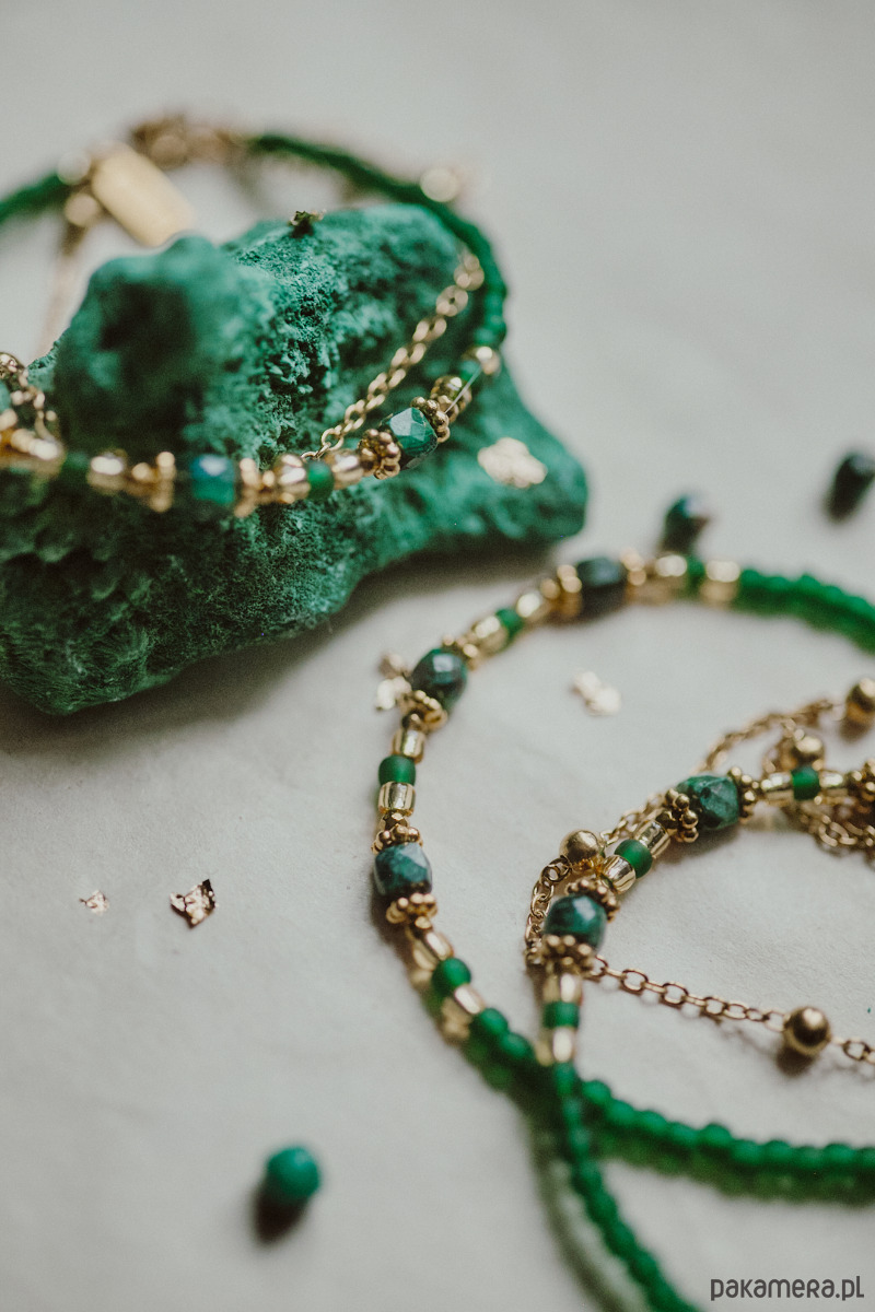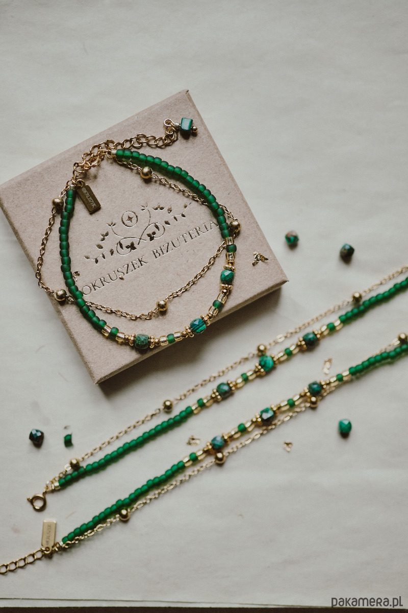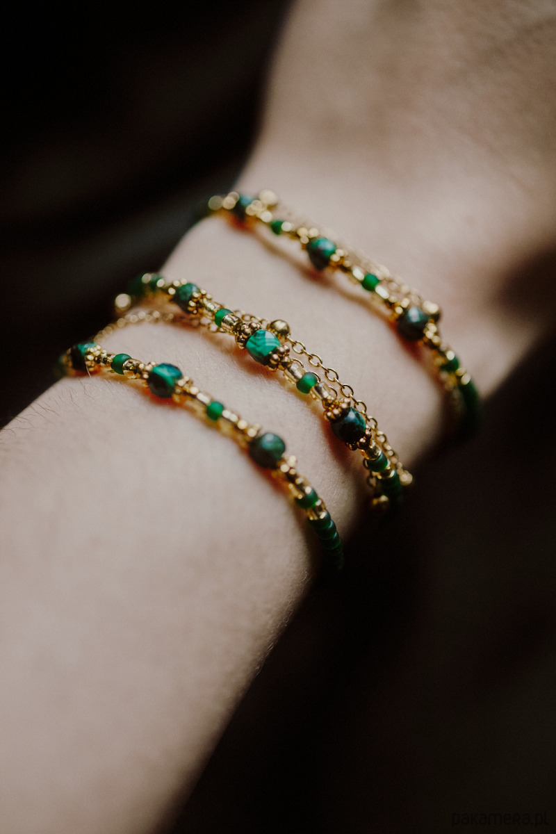 Malachit, emeraldowo-zielone szkło i złota stal jubilerska doskonale wpasowują się w wyjściową atmosferę. Zrób sobie przyjemność i ubierz na siebie kamień, który tworzył się pod ziemią tysiące lat —⊹₊⟡⋆