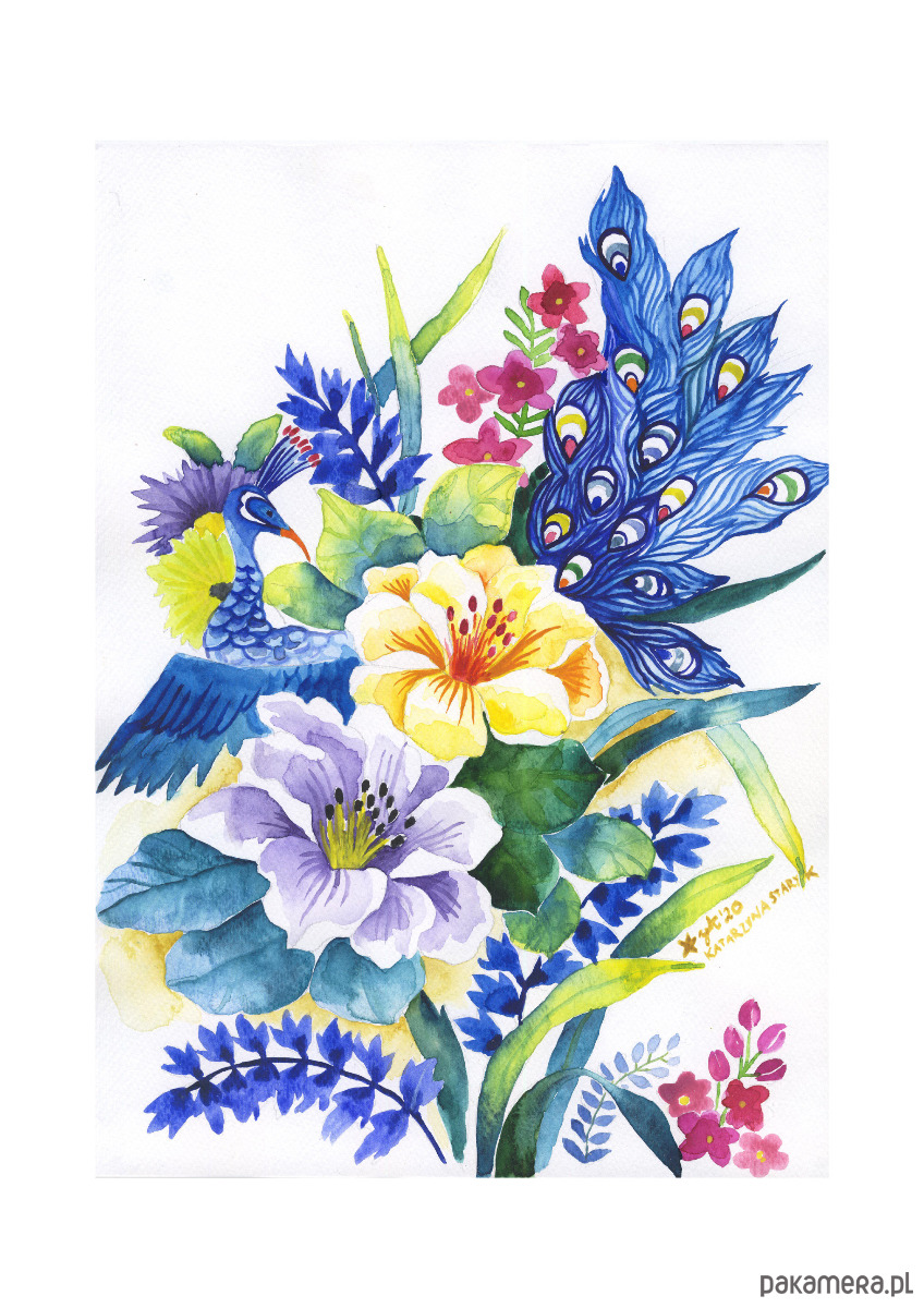 Oryginalny obraz akwarelowy + cienkopis