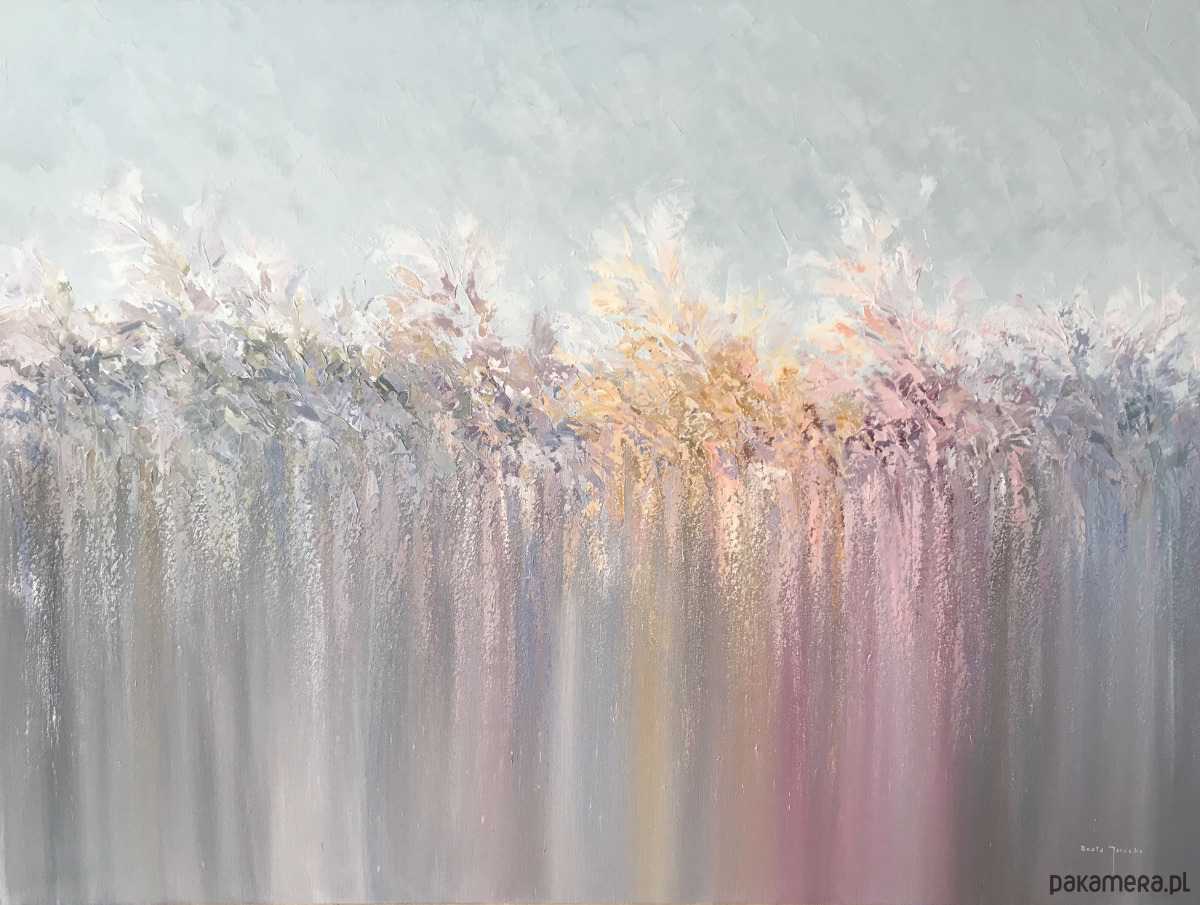 Obraz bez ramy - boki są zamalowane w kolorystyce obrazu, co oznacza, że nie wymaga on obramowania i jest gotowy do zawieszenia