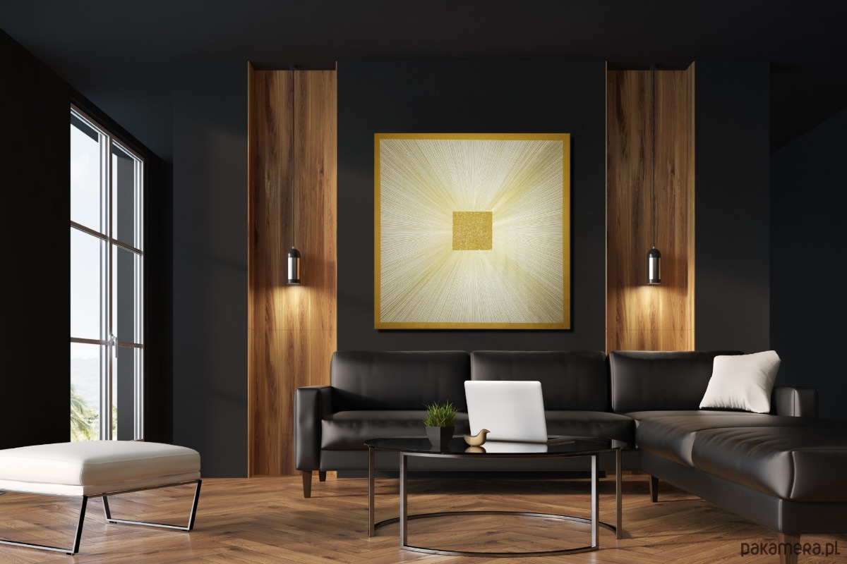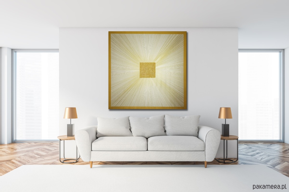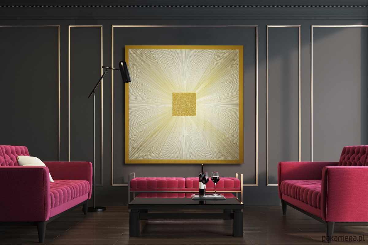 Obraz jest namalowany farbami akrylowymi z użyciem pasty strukturalnej (faktura 3D - środkowy kwadrat).