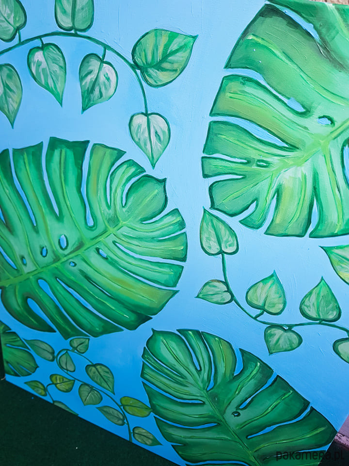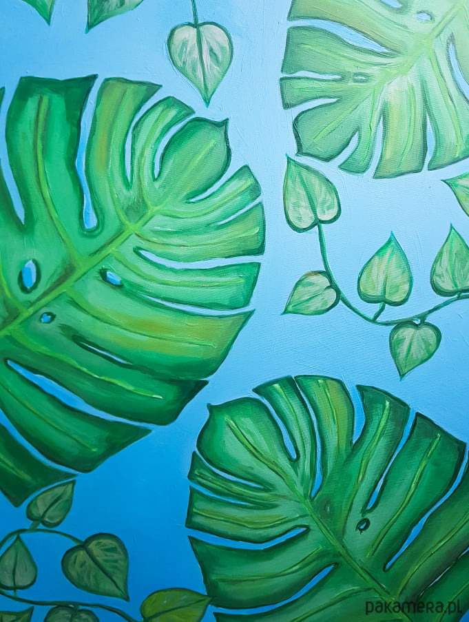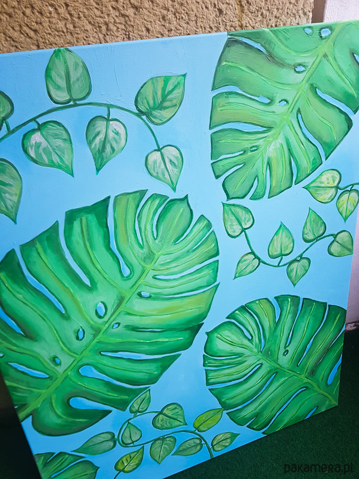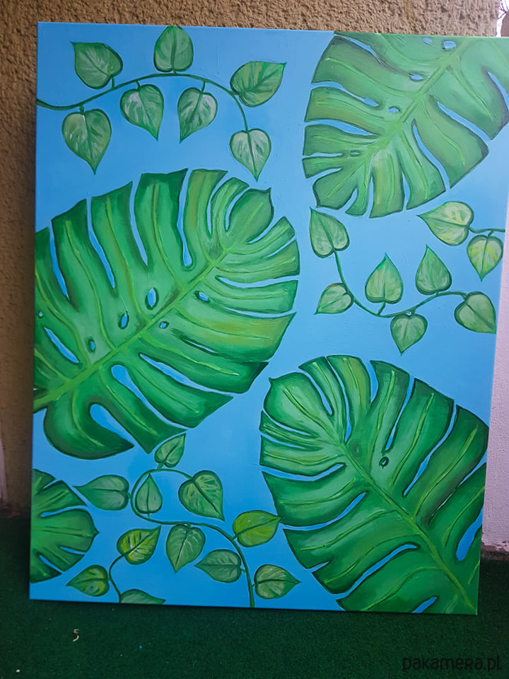 chciałabym zaproponować przepiękną dekorację, która sie super sprawdzi w każdej przestrzeni.Jestem w stanie namalować wiele różnych rodzajów roślin. Wszystko zależy od wyobraźni.Obraz na zdjęciu przedstawia monstery oraz pothos. Jest możliwość wybrania każdego rodzaju kwiatów.