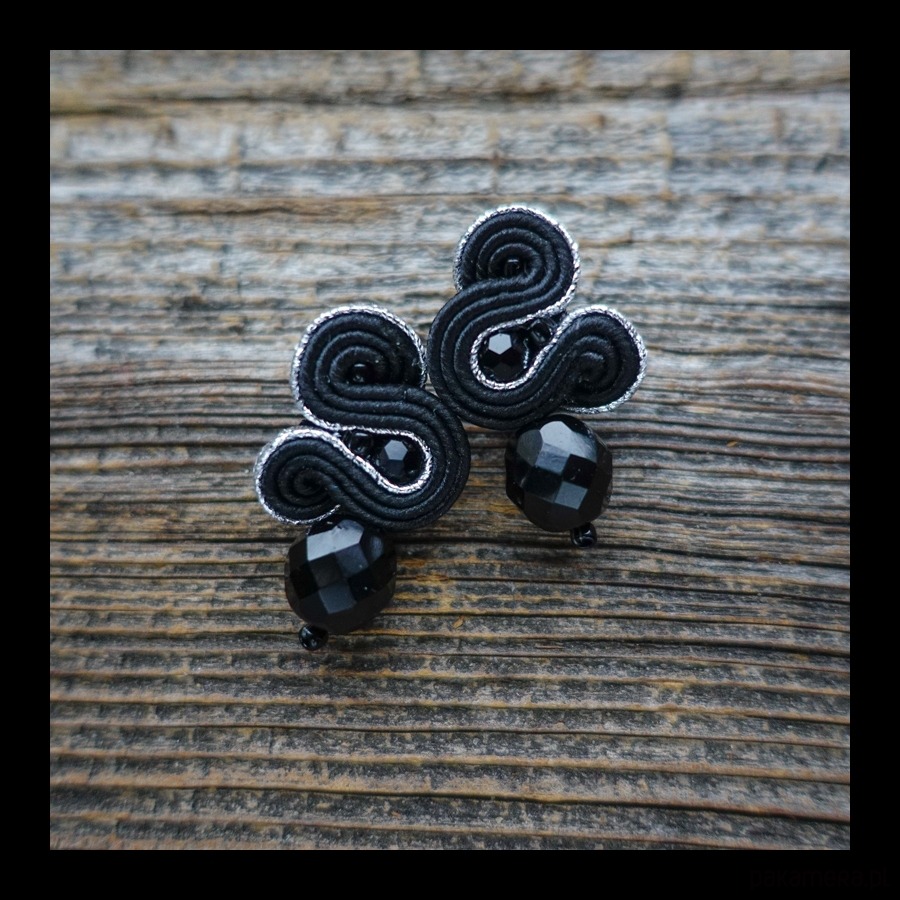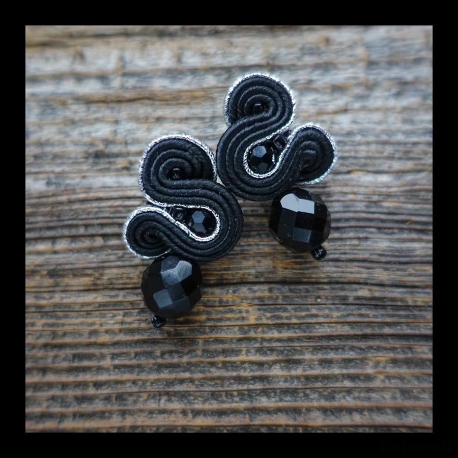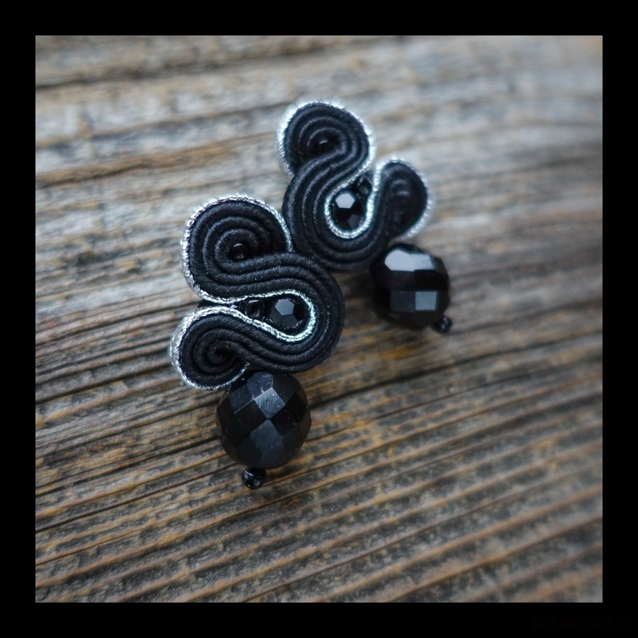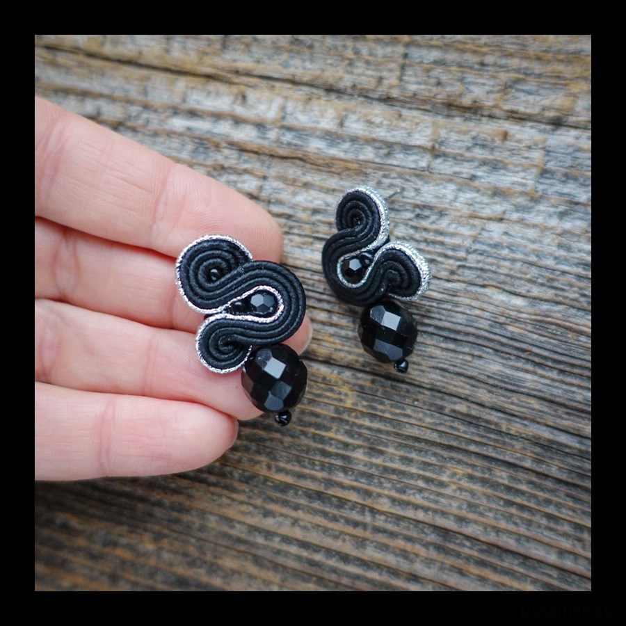 🧵 Materiały: sznurki soutache, fasetowane szklane koraliki, koraliki Preciosa, sztyfty ze stali chirurgicznej.