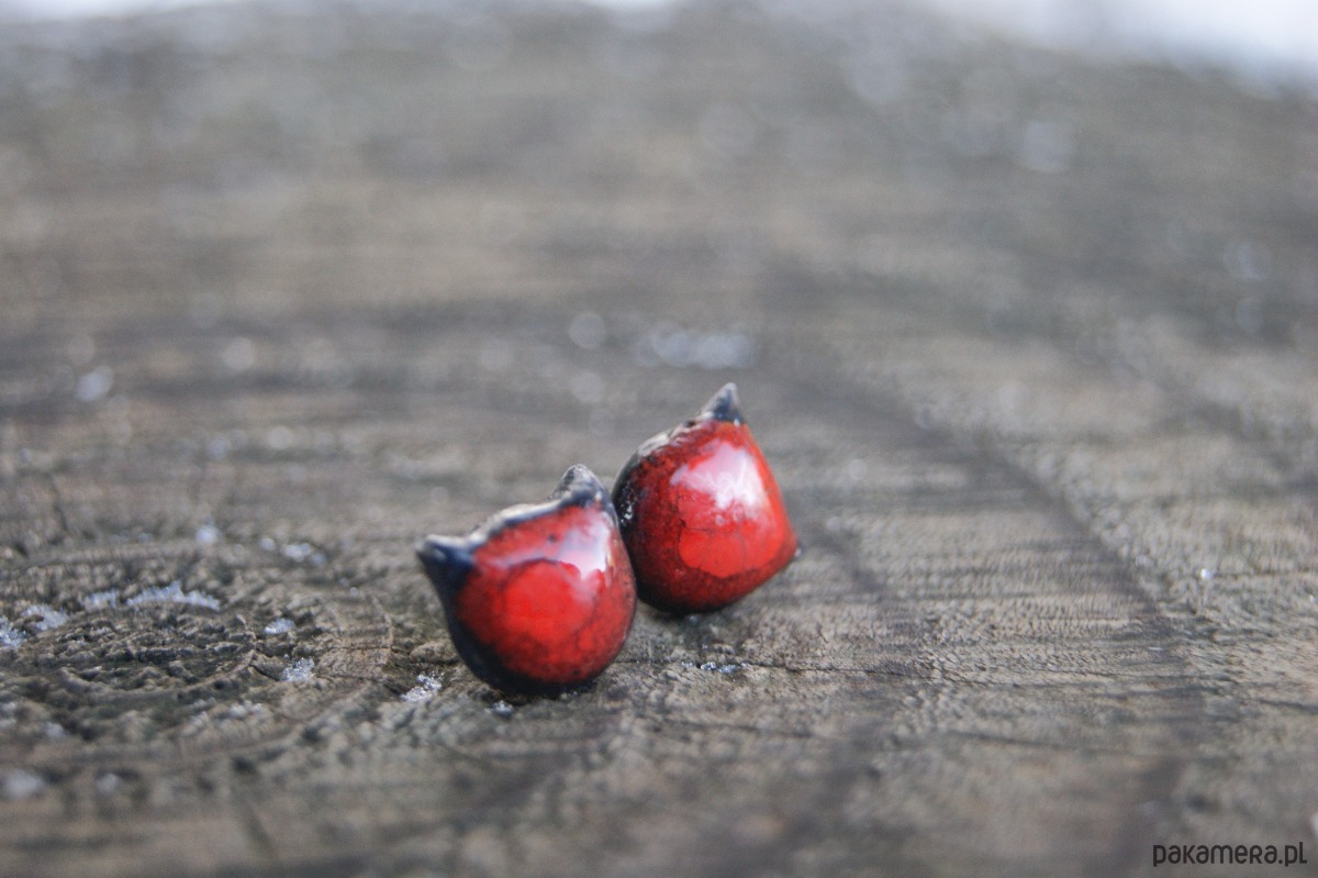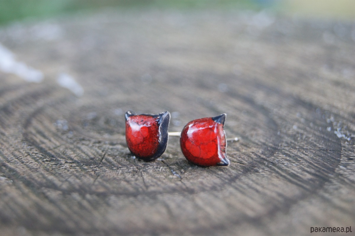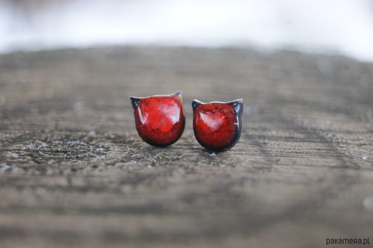 Małe Kocie Główki "Czerwony Mruk" kolczyki ceramiczne