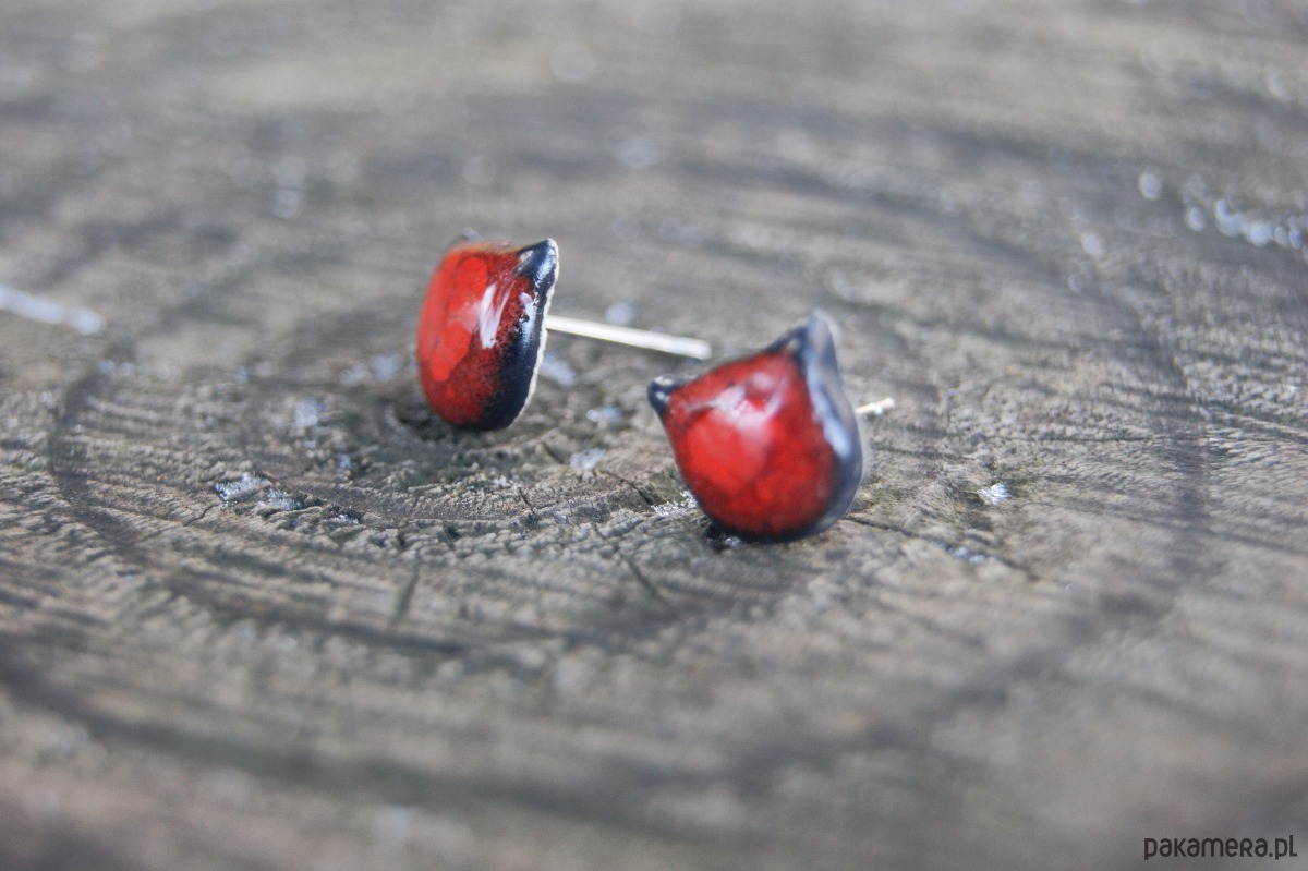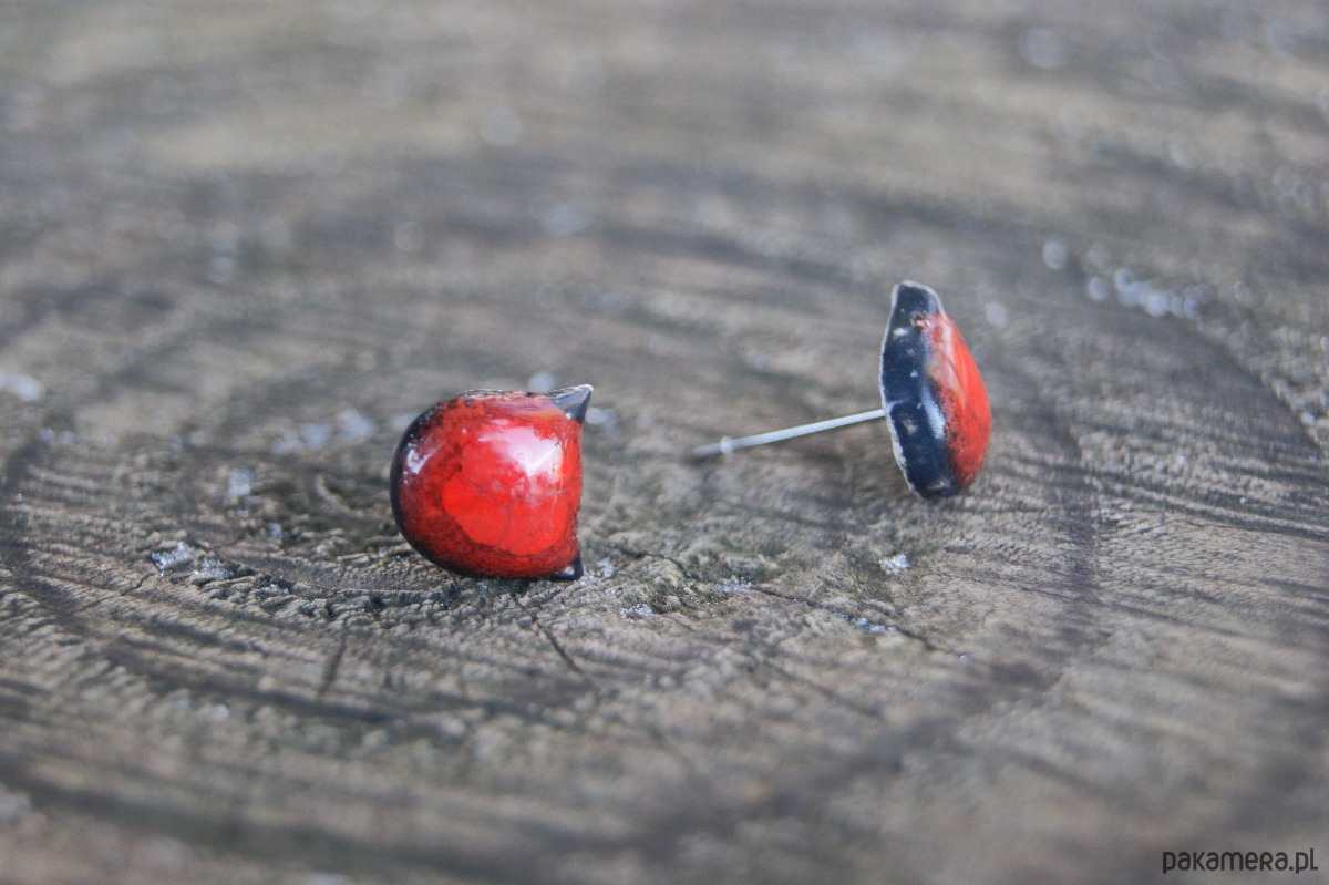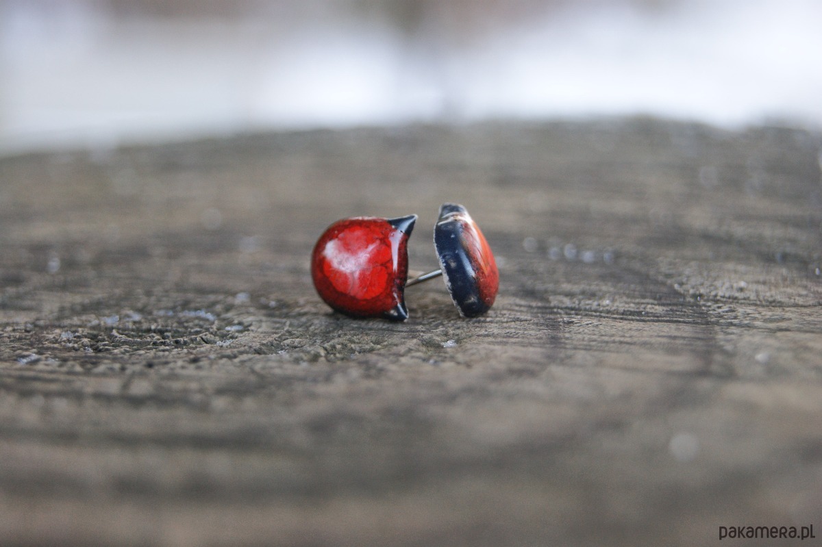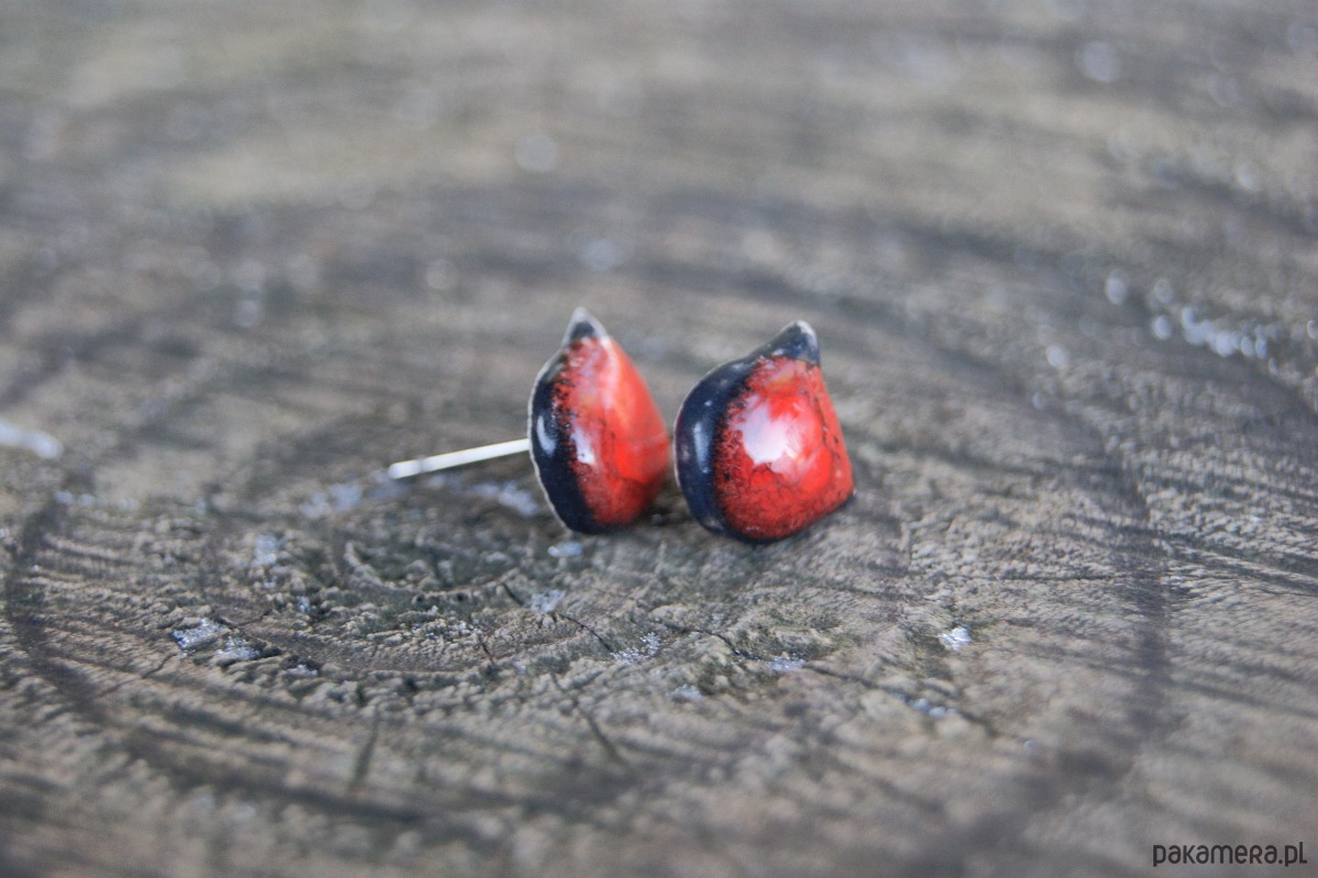 Małe Kocie Główki "Czerwony Mruk" kolczyki ceramiczne