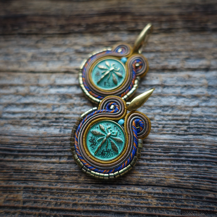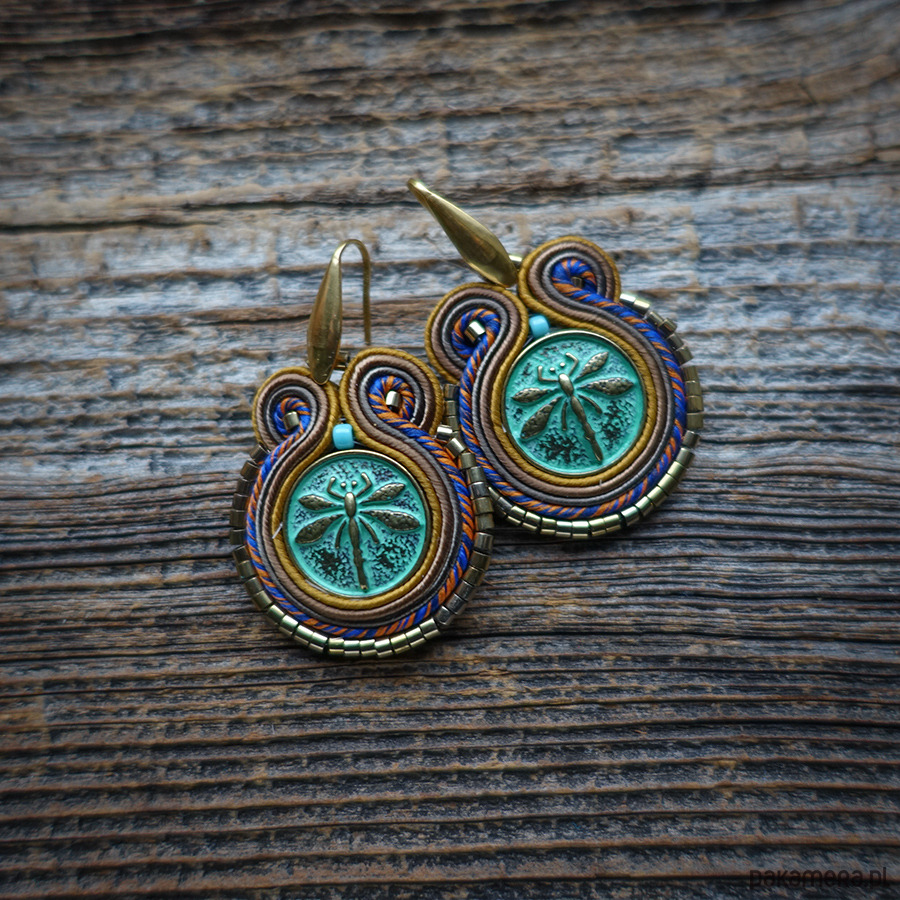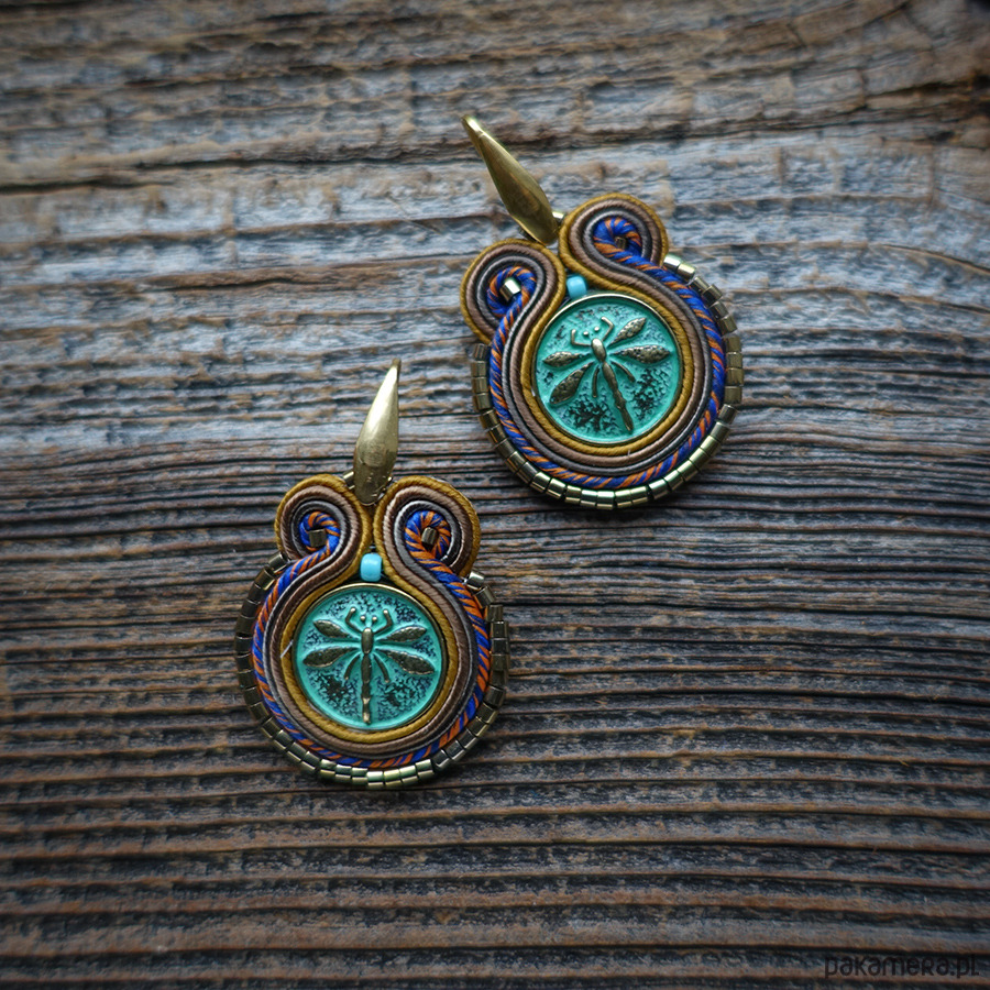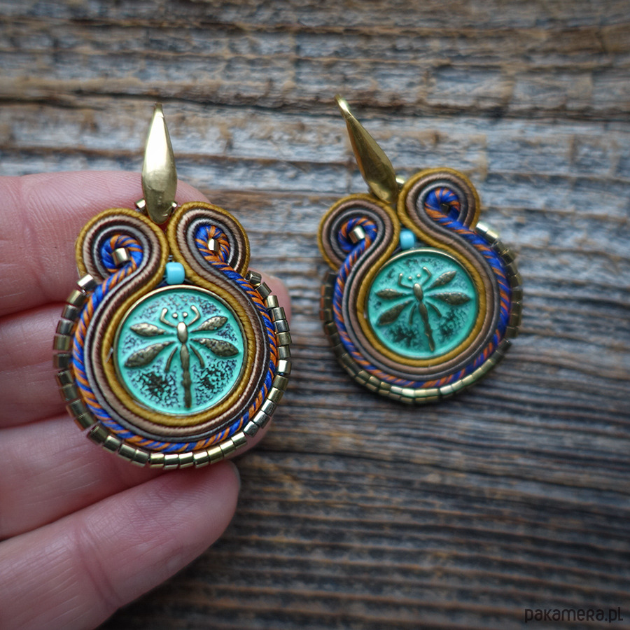 Kolczyki wykonane metodą haftu soutache.