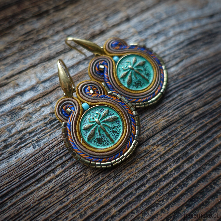 W centrum znajduje się ozdobny guzik z motywem ważki, który dodaje biżuterii artystycznego uroku 🐉✨