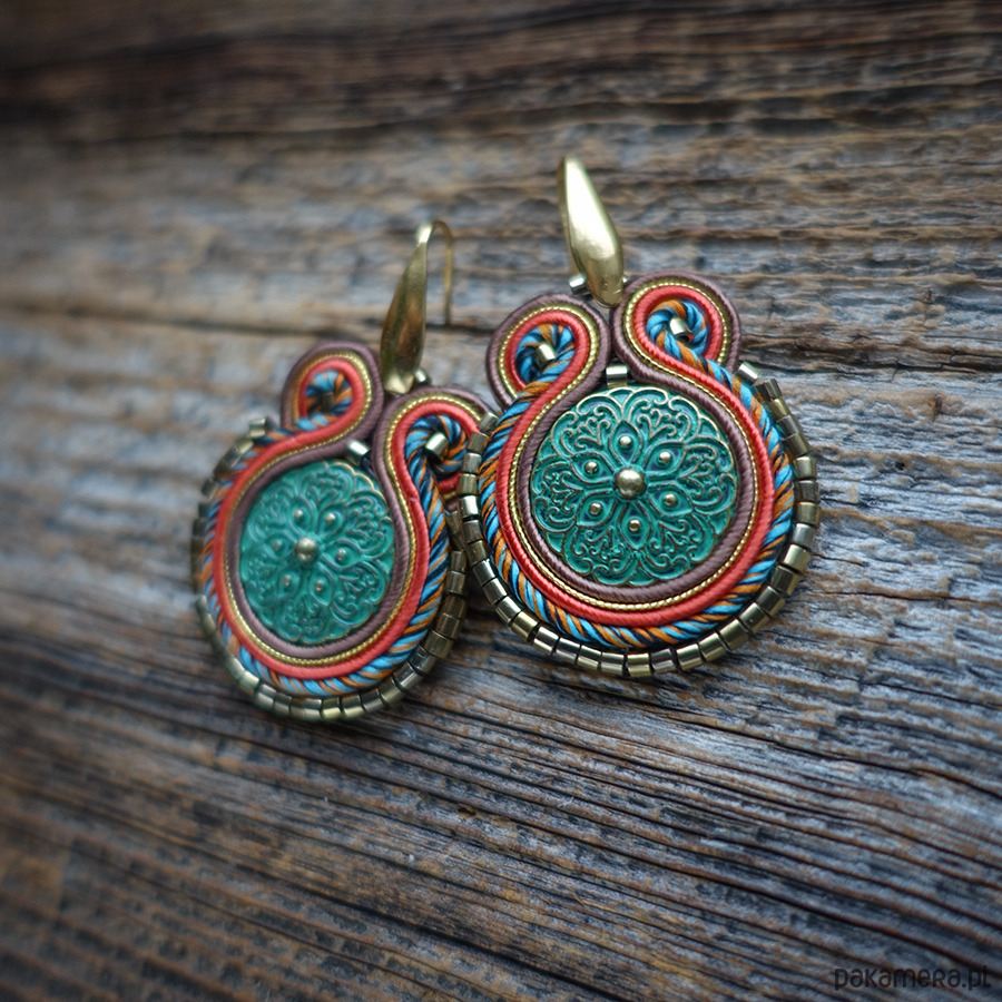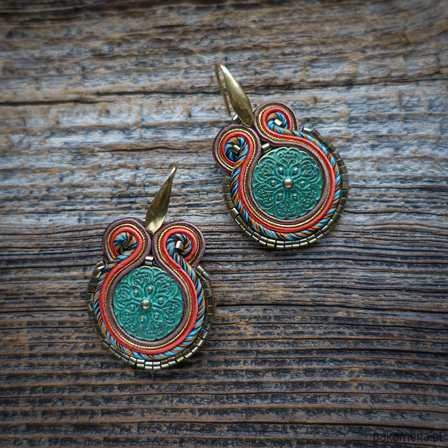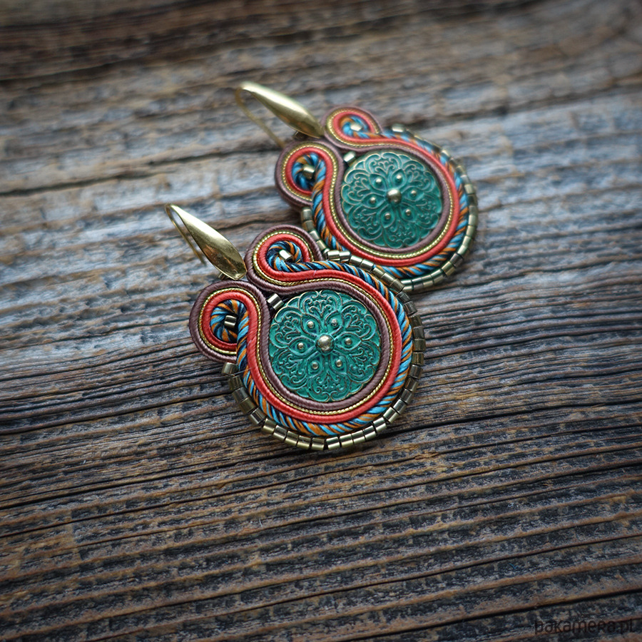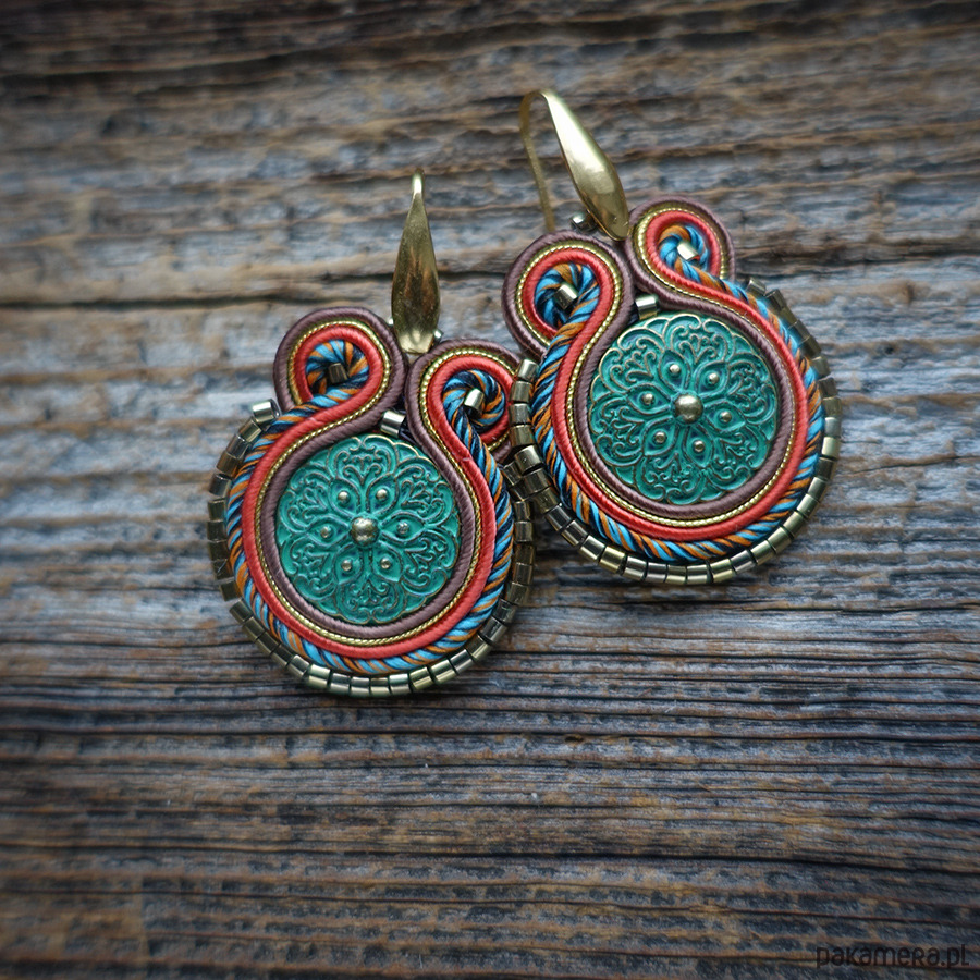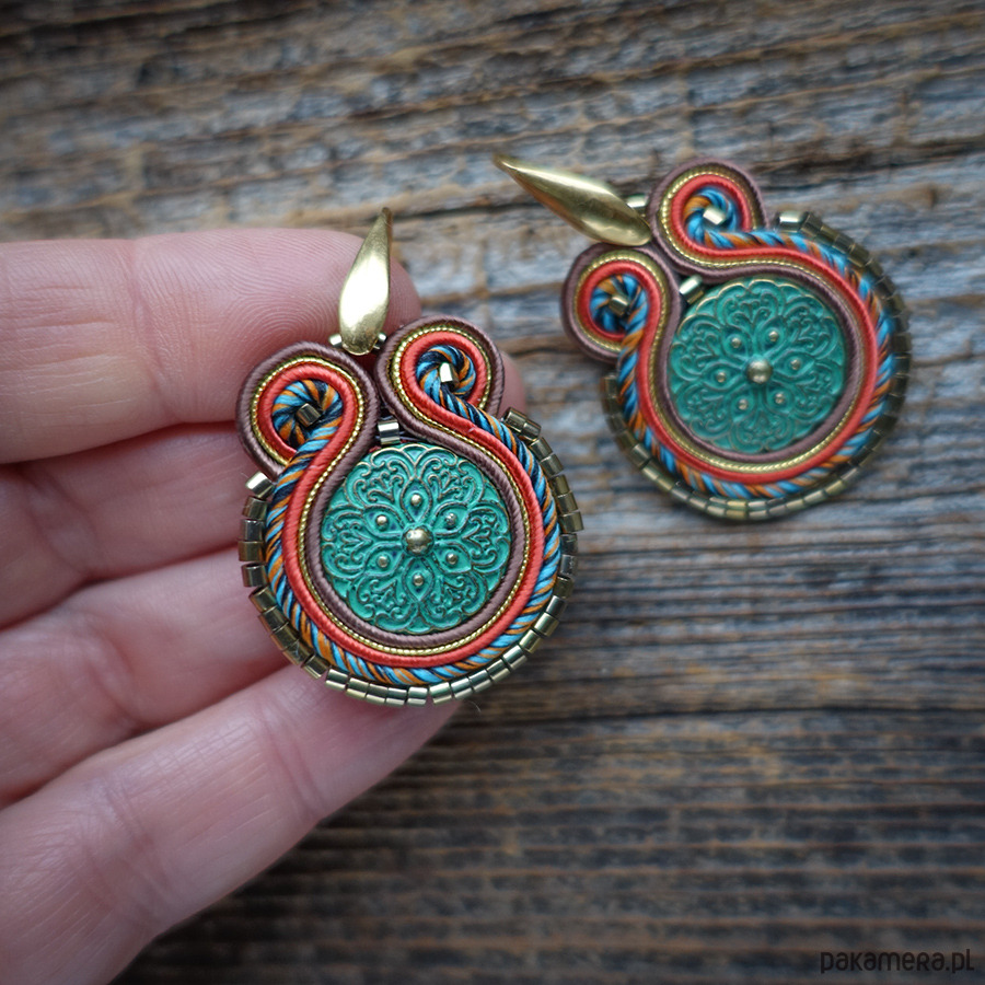 Kolczyki wykonane metodą haftu soutache.