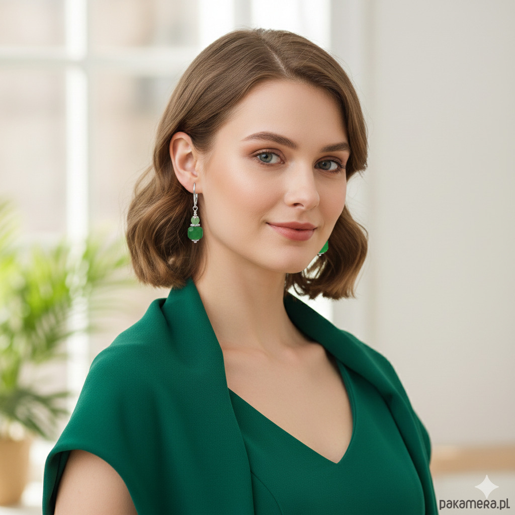 Małe kolczyki z zielonym agatem i awenturynem srebro 925