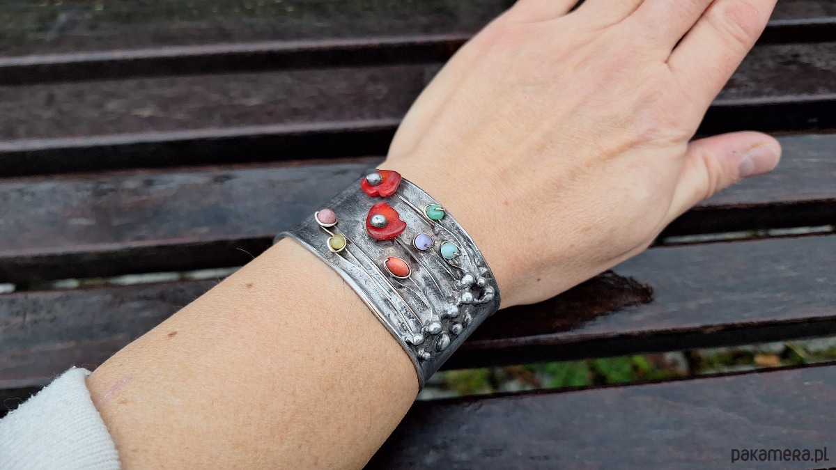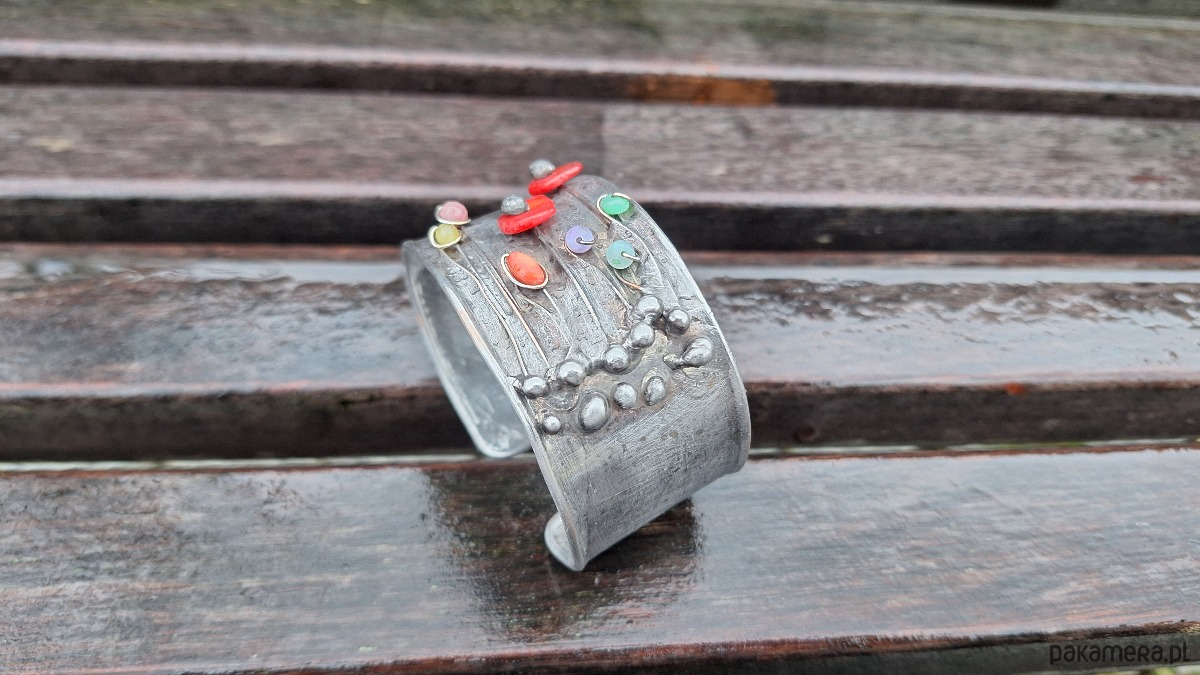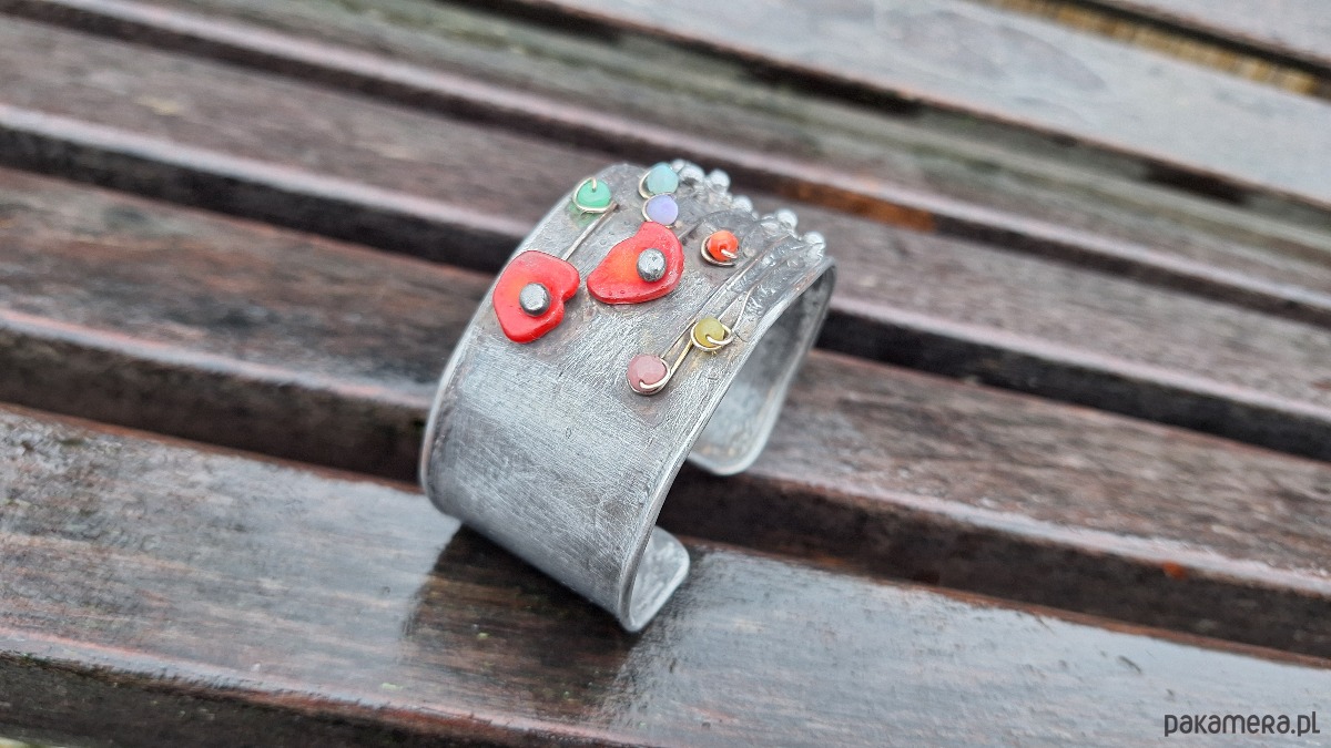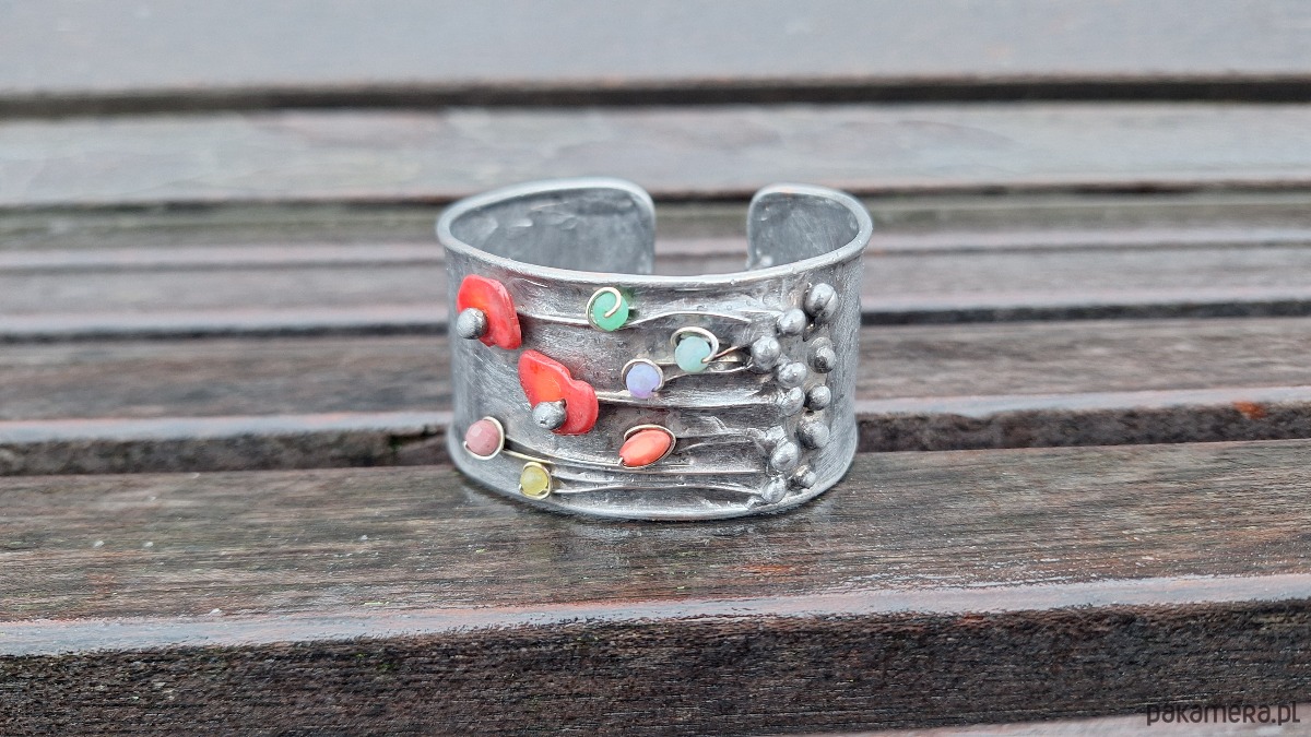 Bransoletka wykonana z miedzi, cyny, koralowców i muszli