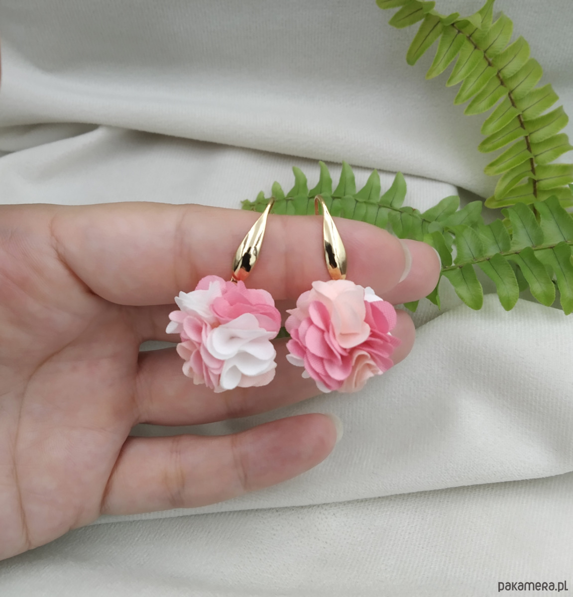 Małe minimalistyczne kolczyki kwiatki różowe ombre