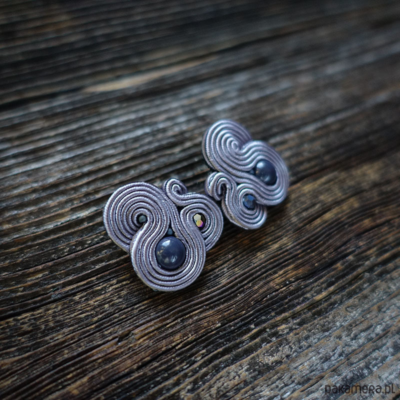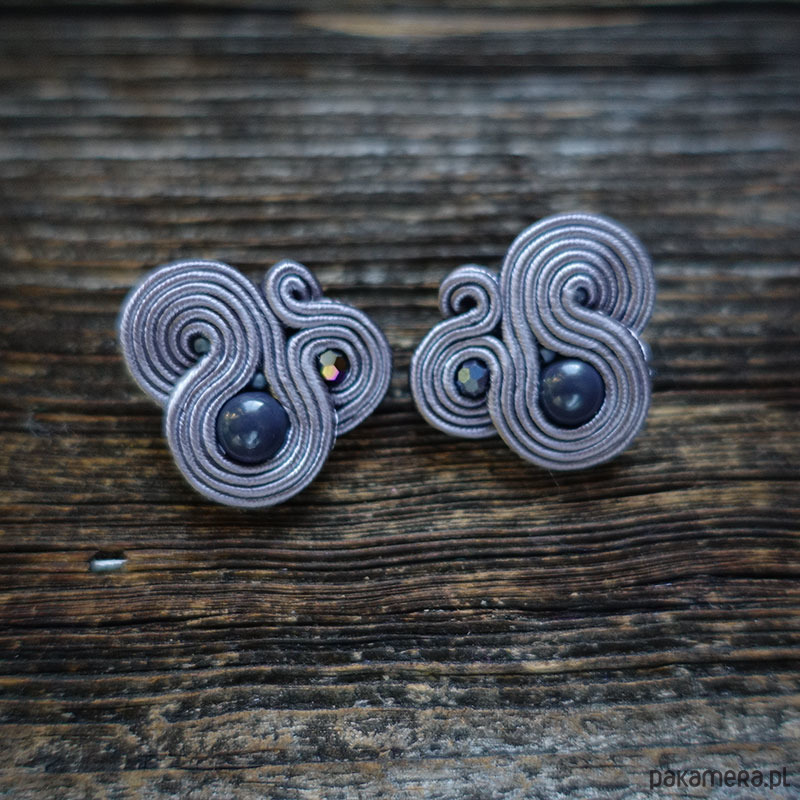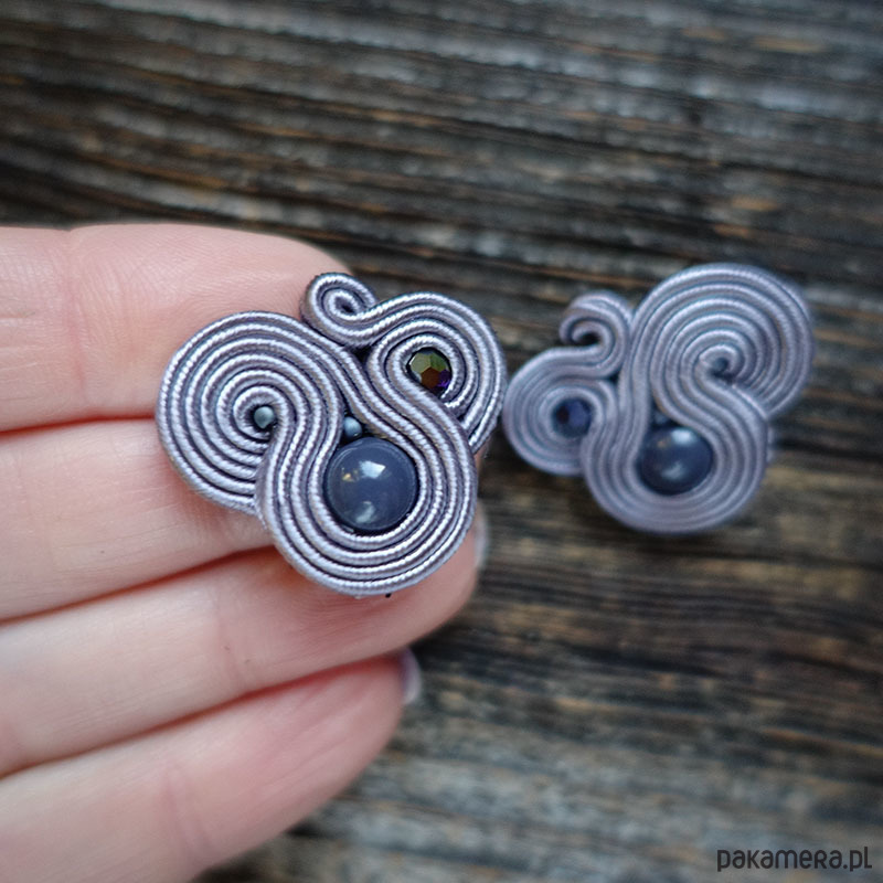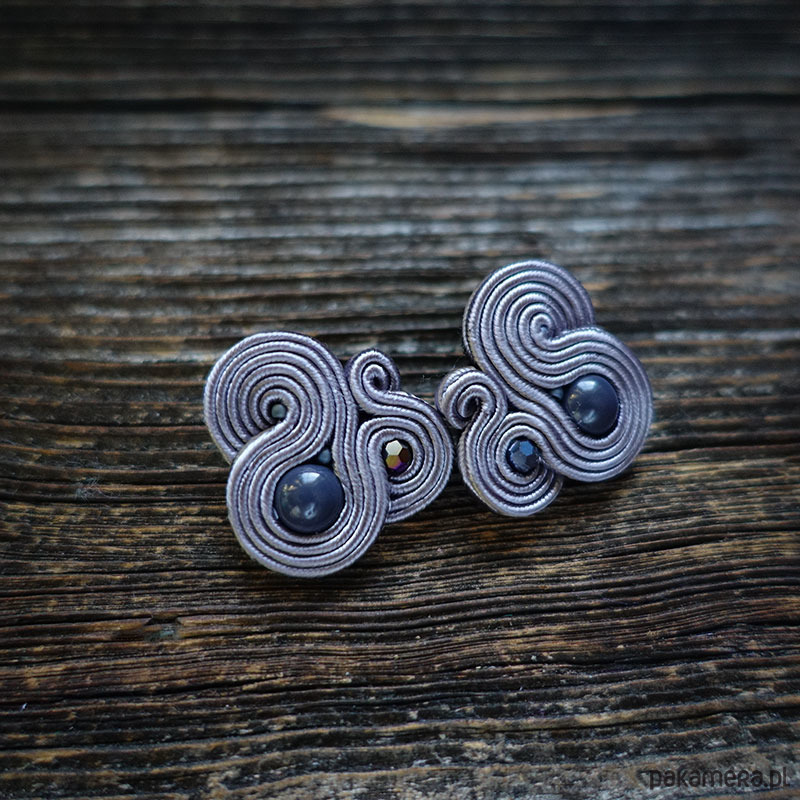 Małe , szare, eleganckie kolczyki sutasz