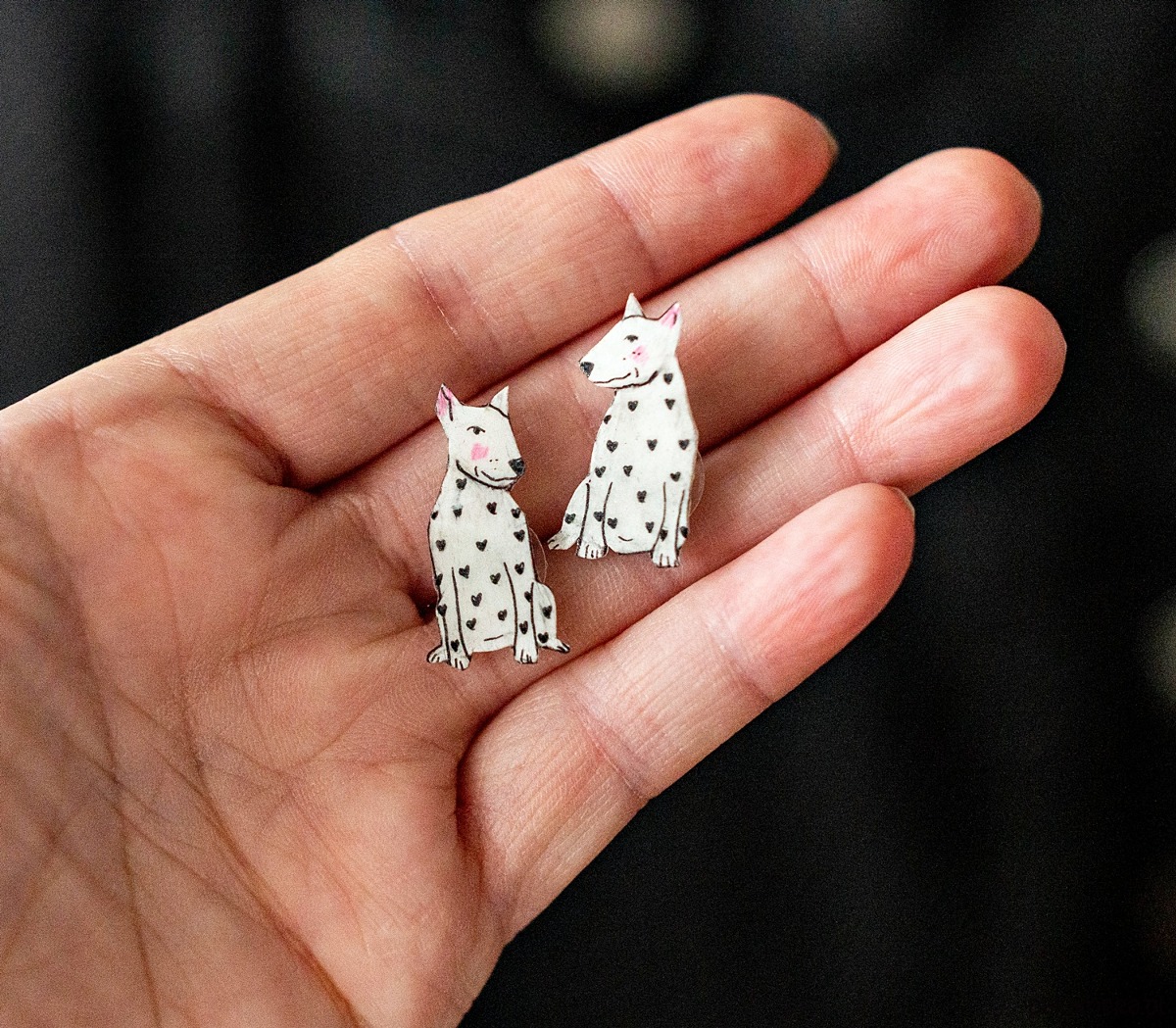 Kolczyki dla osoby kochającej psy, zwłaszcza bulteriery.