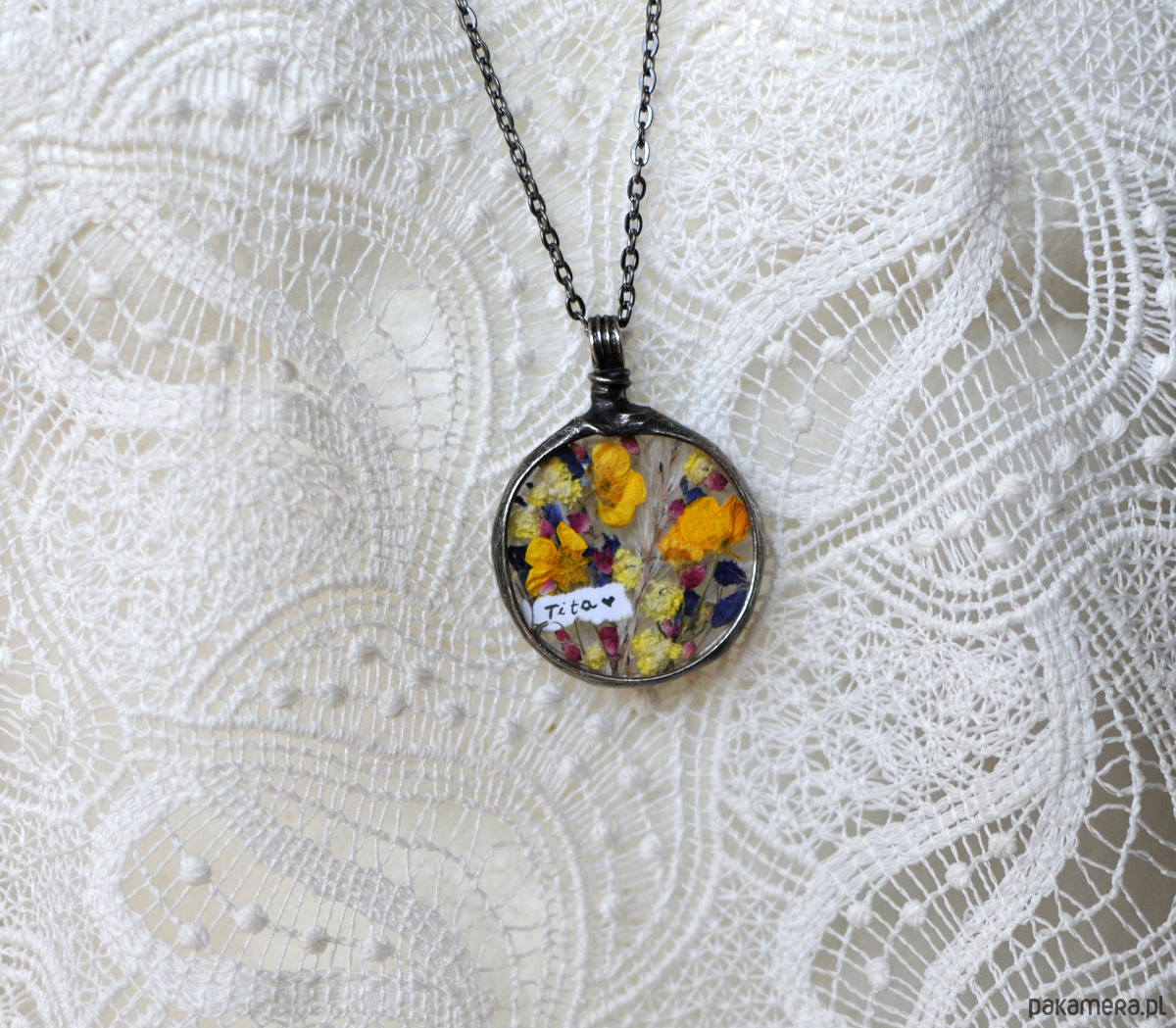 Naszyjnik z polnymi kwiatami z ukrytą mini wiadomością!