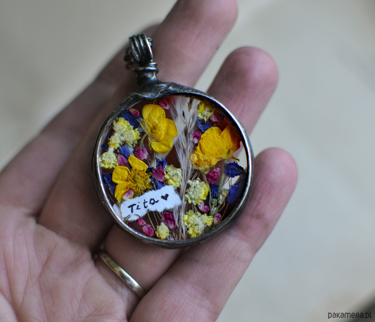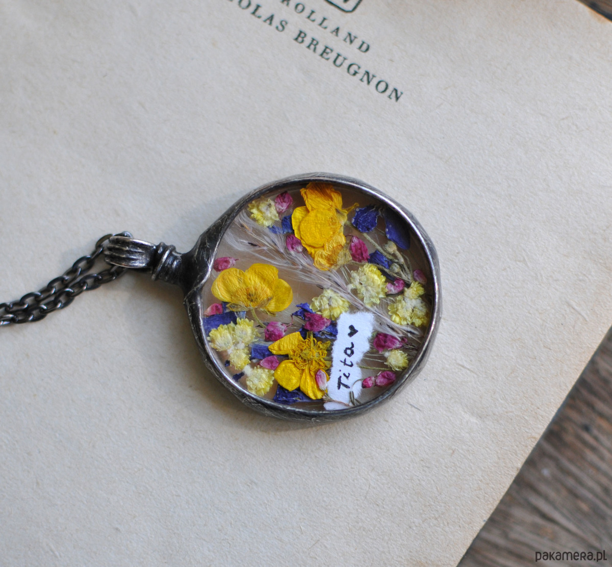 Naszyjnik z polnymi kwiatami z ukrytą mini wiadomością!