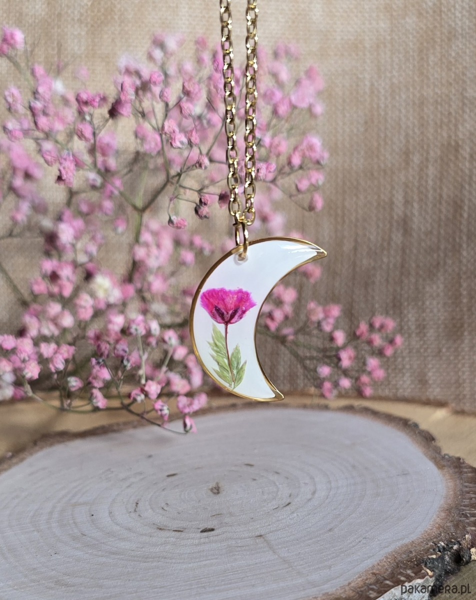 Oferuję Państwu unikalną biżuterię. Zawieszka jest wykonana z suszonych kwiatów i żywicy epoksydowej. Biżuteria jest wspaniałym i oryginalnym prezentem na lata.