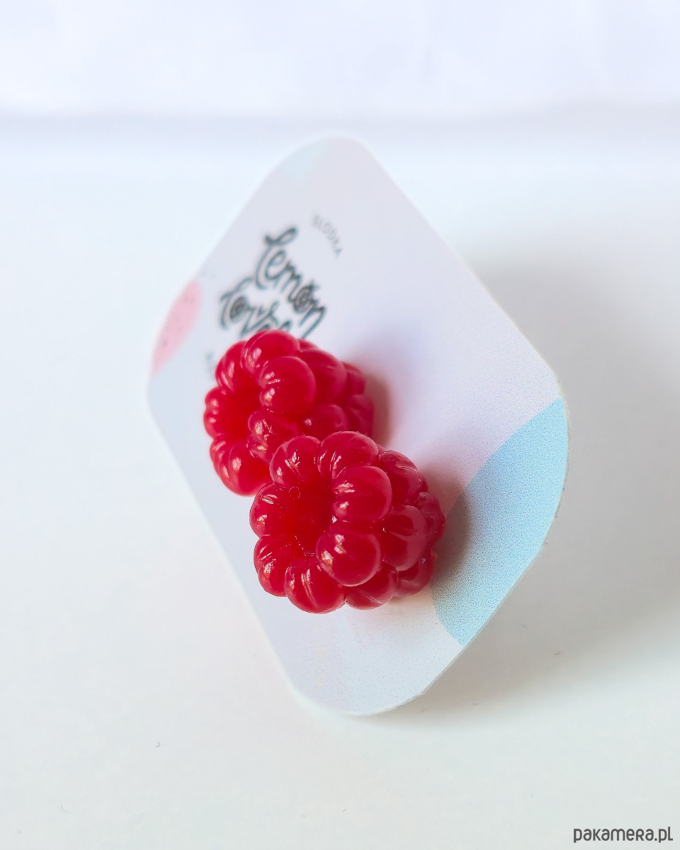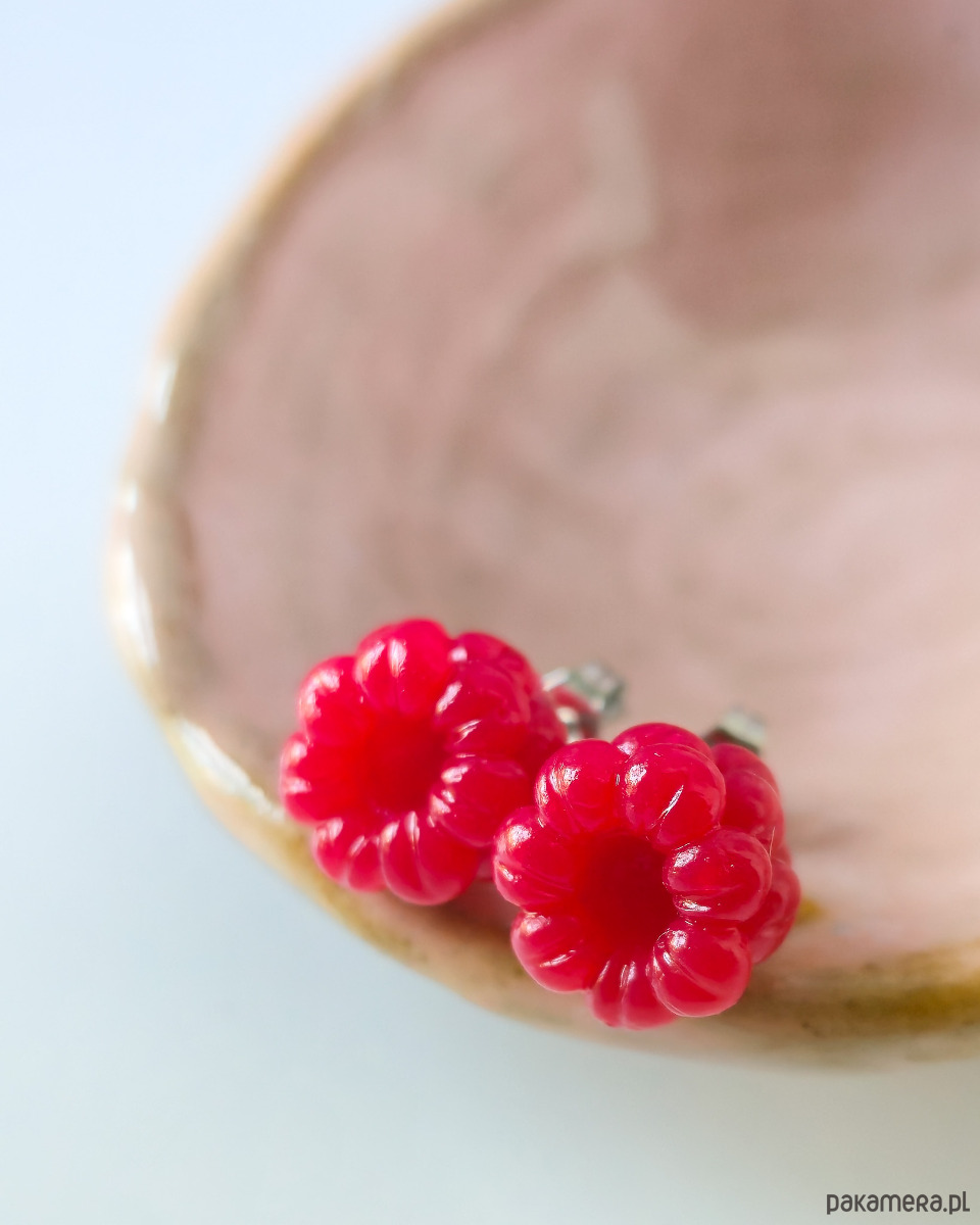 Maliny mają wymiary około 2x2x1cm. Kolczyki są bardzo lekkie.