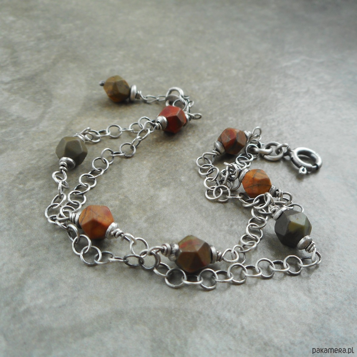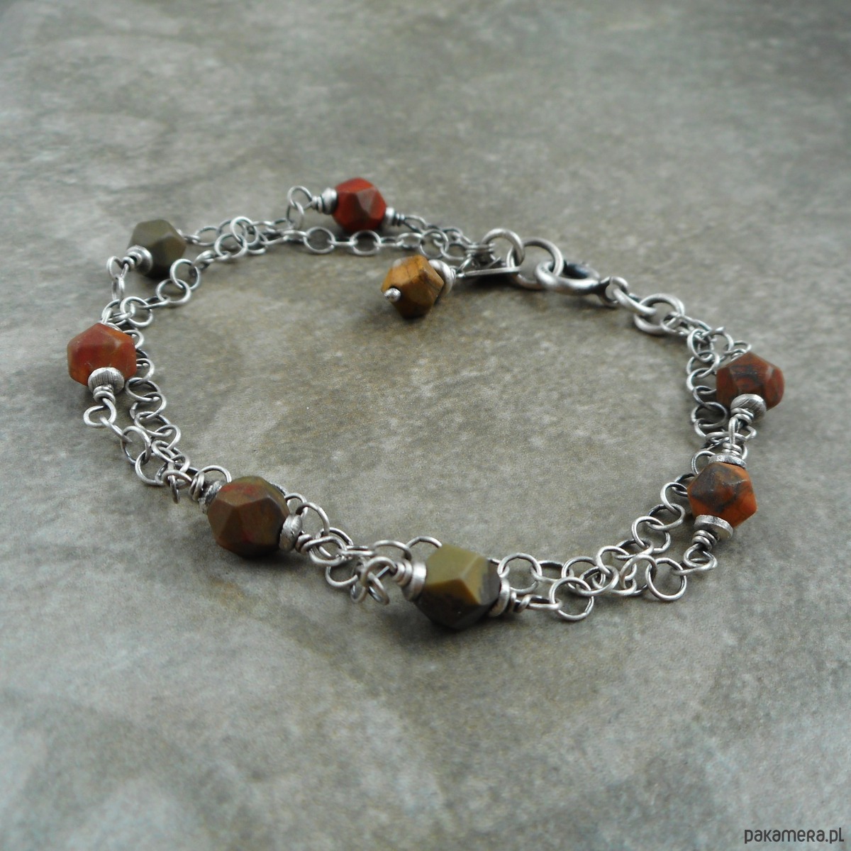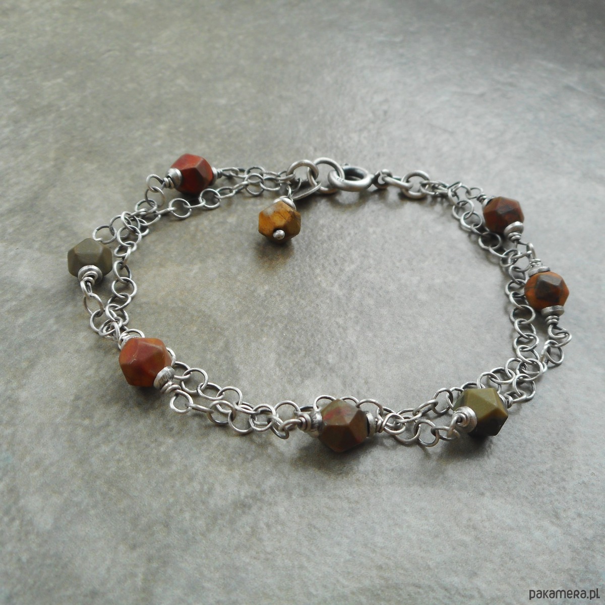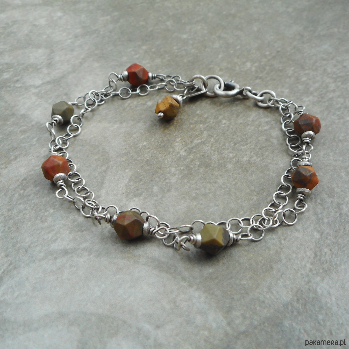 Wyjątkowa bransoletka z kamieni naturalnych i szlachetnego srebra; kamienie w odcieniach brązu dla wielbicielek barw ziemi.