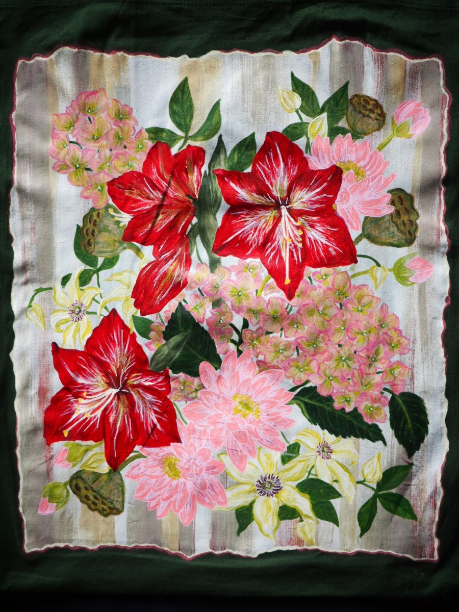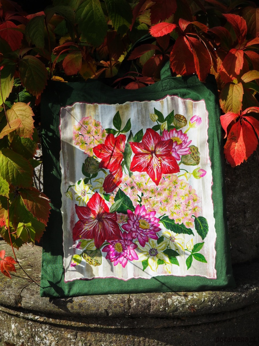 Malowana torba shopperka w kwiaty LOTOS