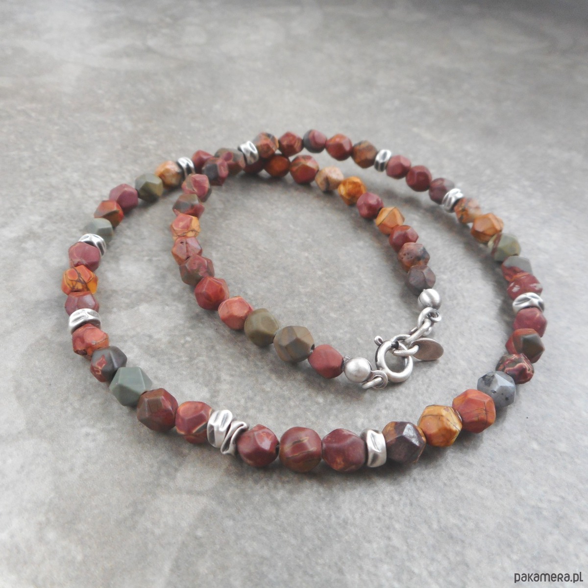 Piękny, bardzo kobiecy naszyjnik wykonany ze szlachetnego srebra i kamieni naturalnych; dla wielbicielek kolorów ziemi, niesamowicie wybarwione jaspisy!