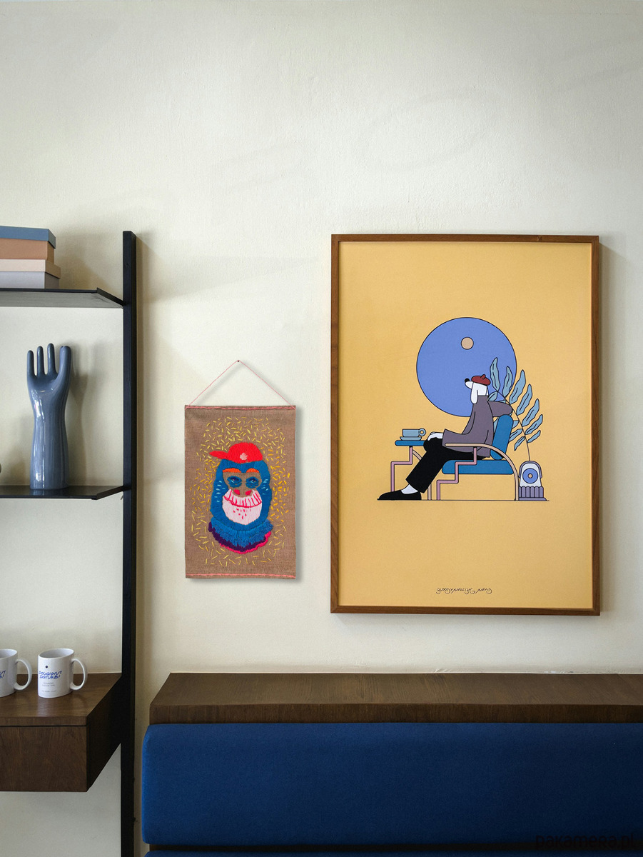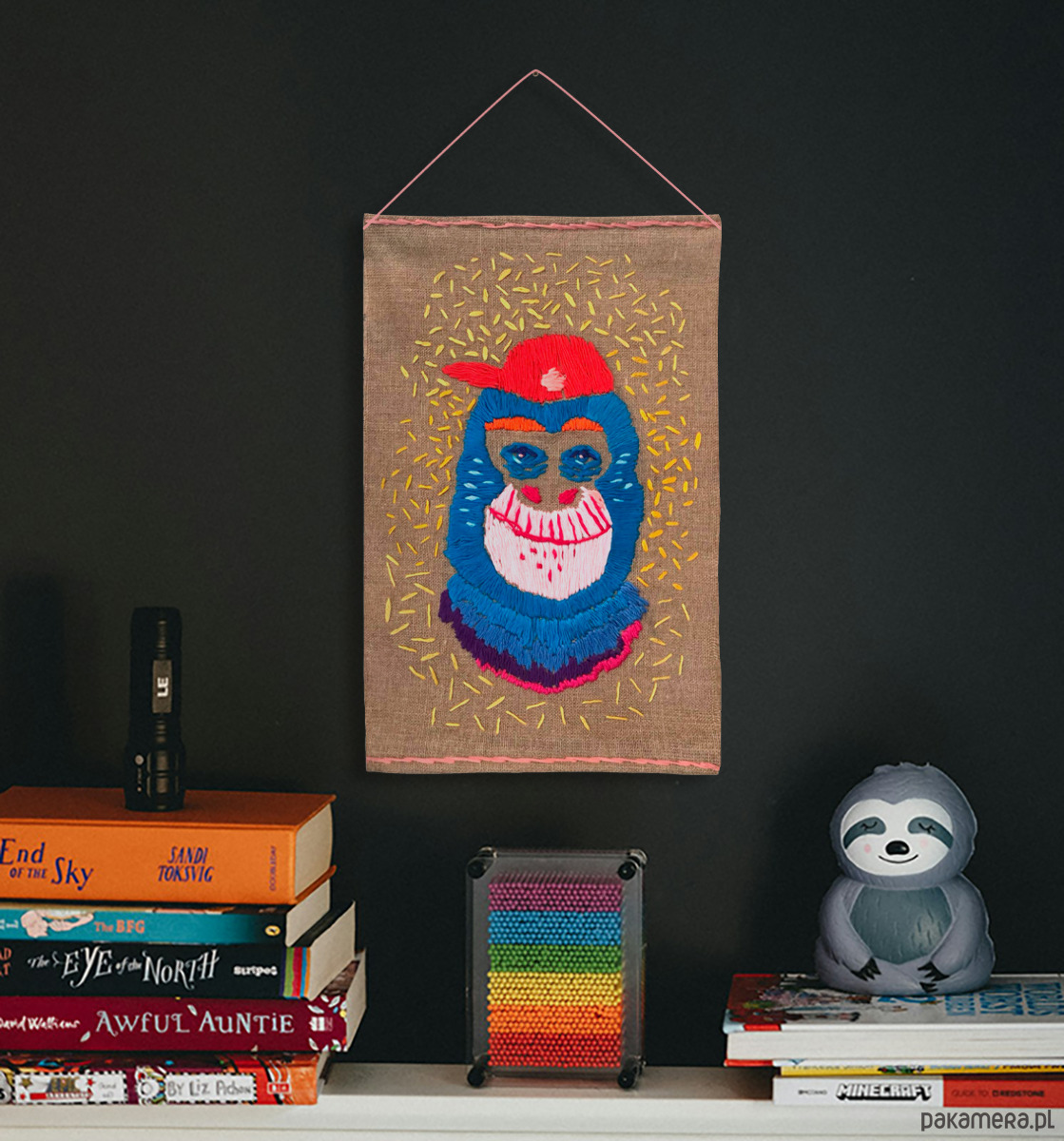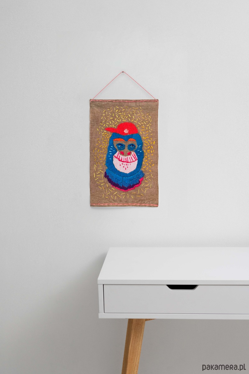 Niebieska małpa to kumpela z dzielni. Uśmiecha się zadziornie i nonszalancko. Dekoracja do pokoju dziecka lub nastolatka ale także miłośników przyrody. Wymiary: 21x29 cm