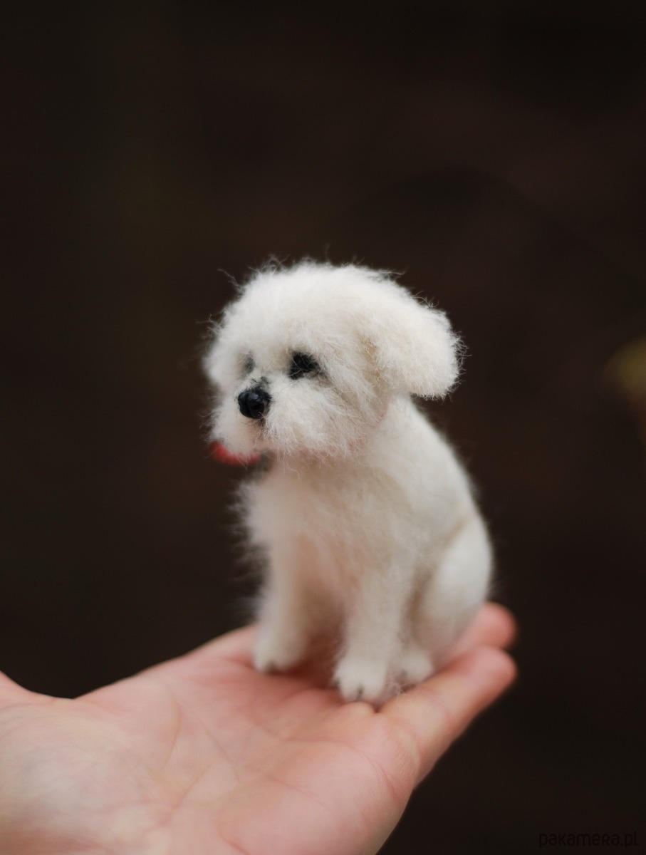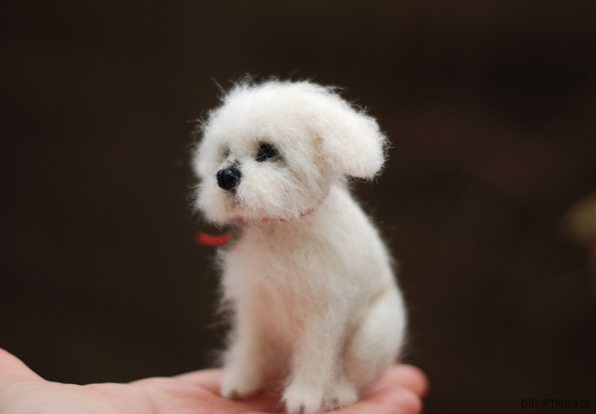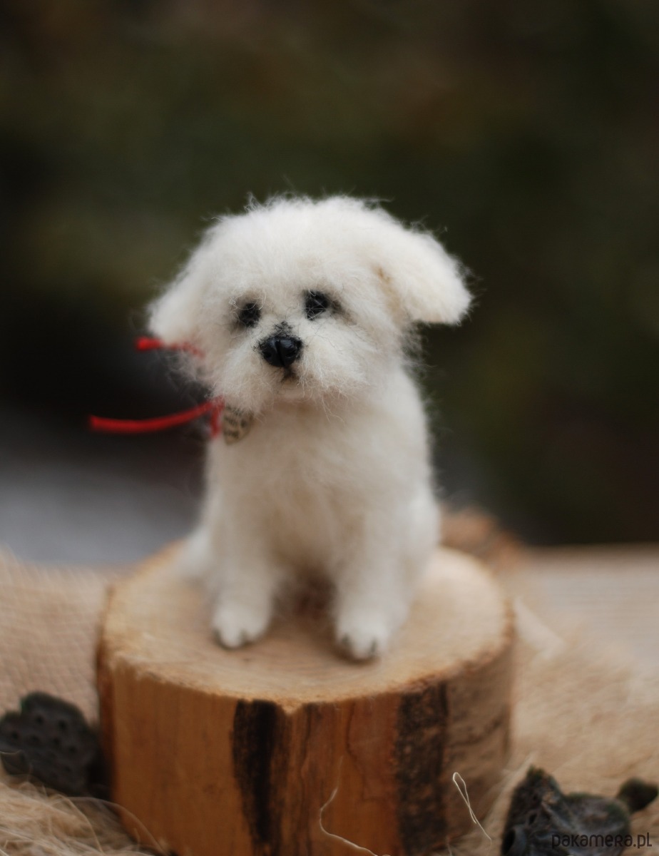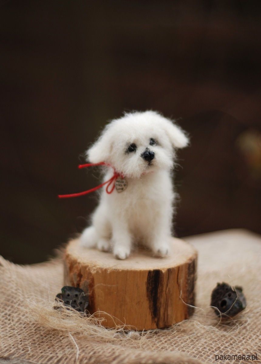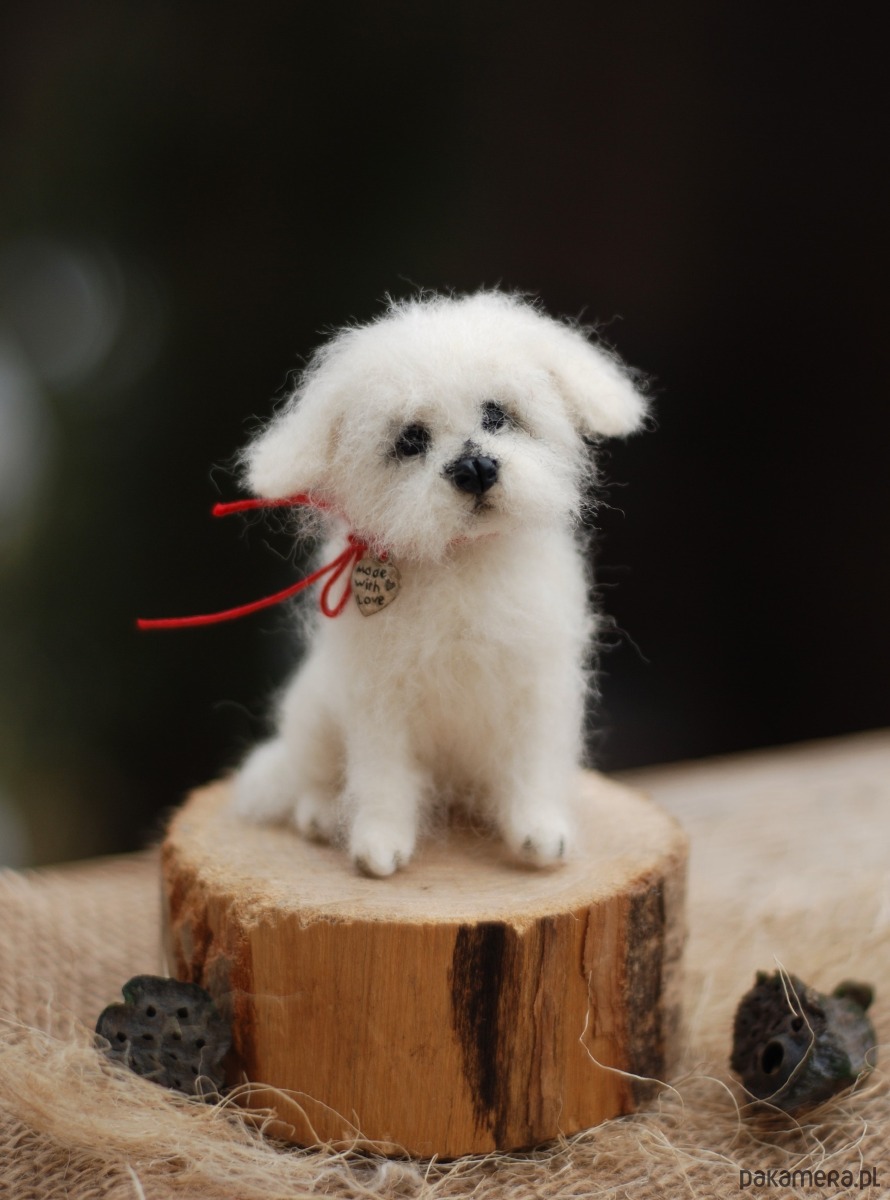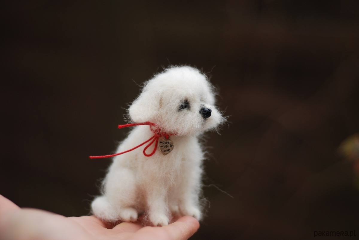 Pies wykonany metodą filcowania na sucho z wełny merynos.