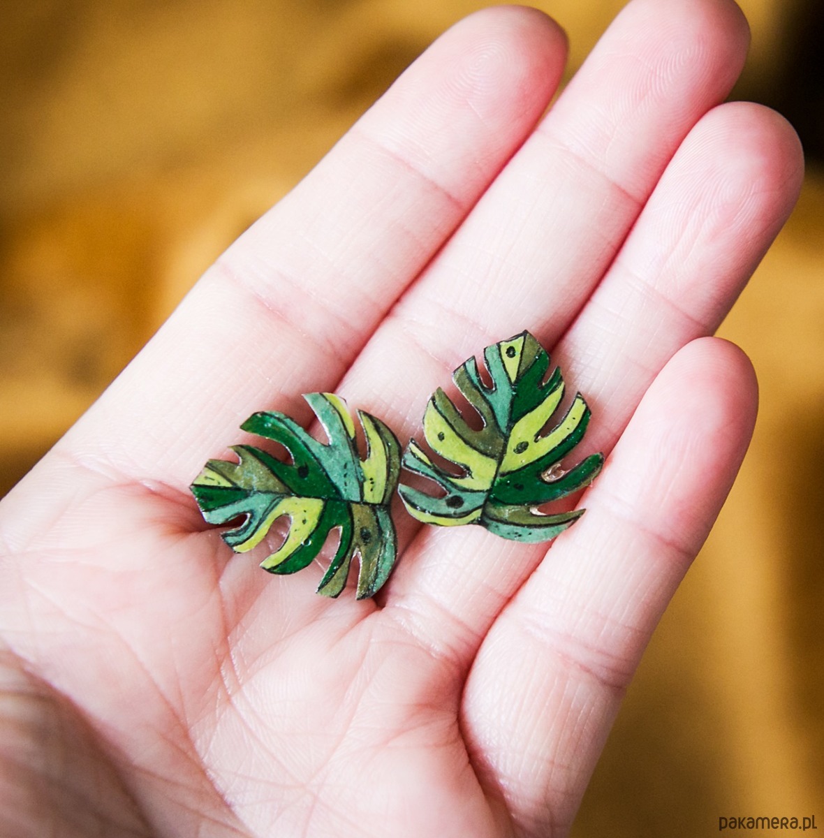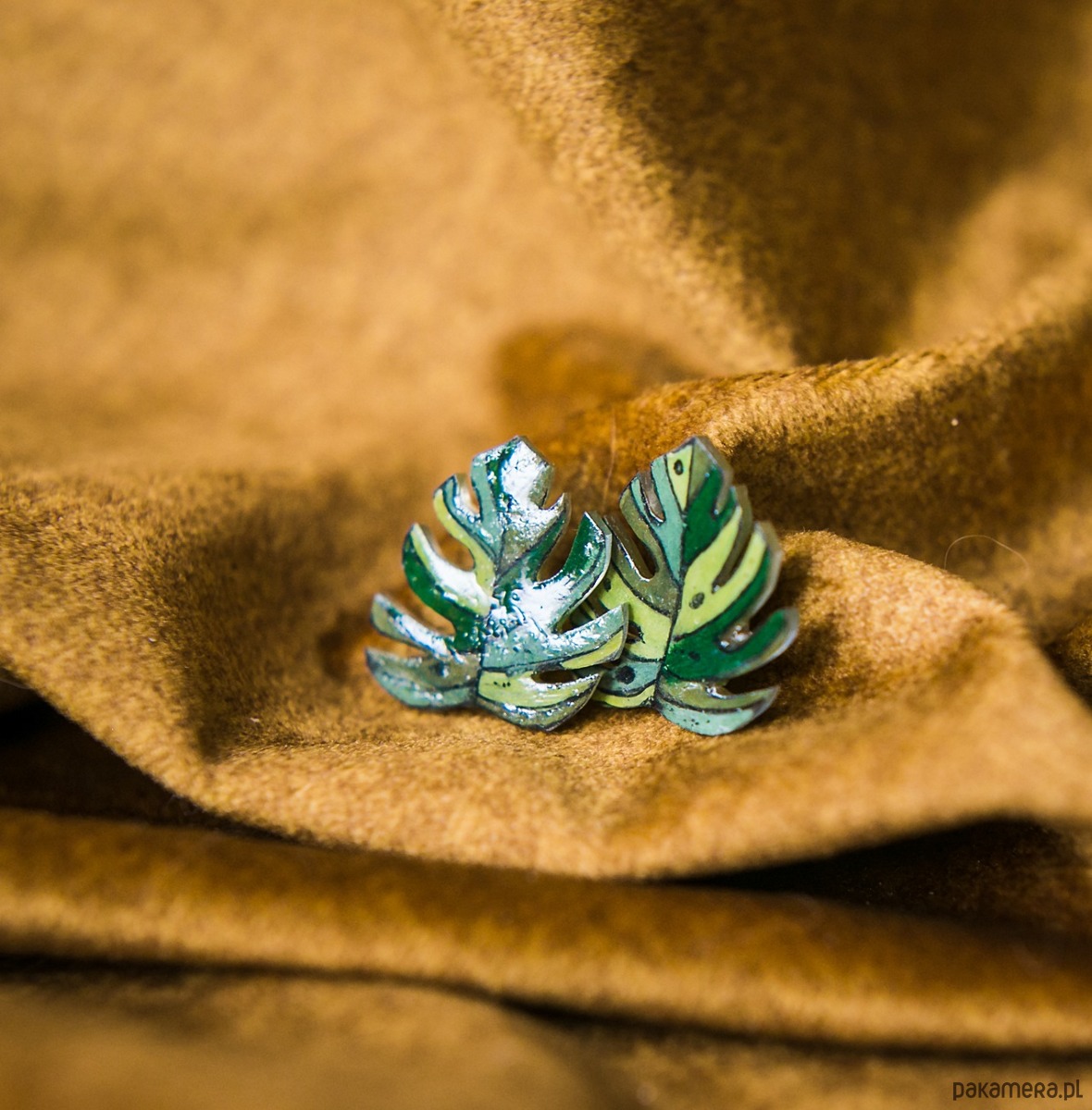 Piękne i i kobiece klipsy z modnym listkiem monstery . Klipsy są bardzo lekkie.