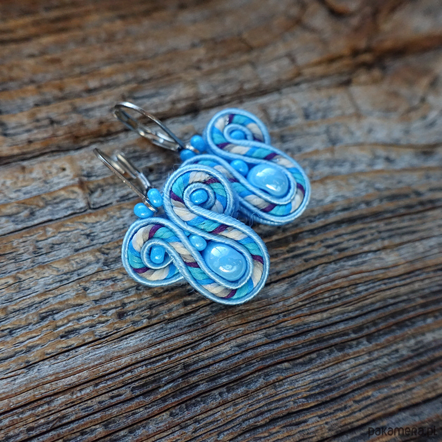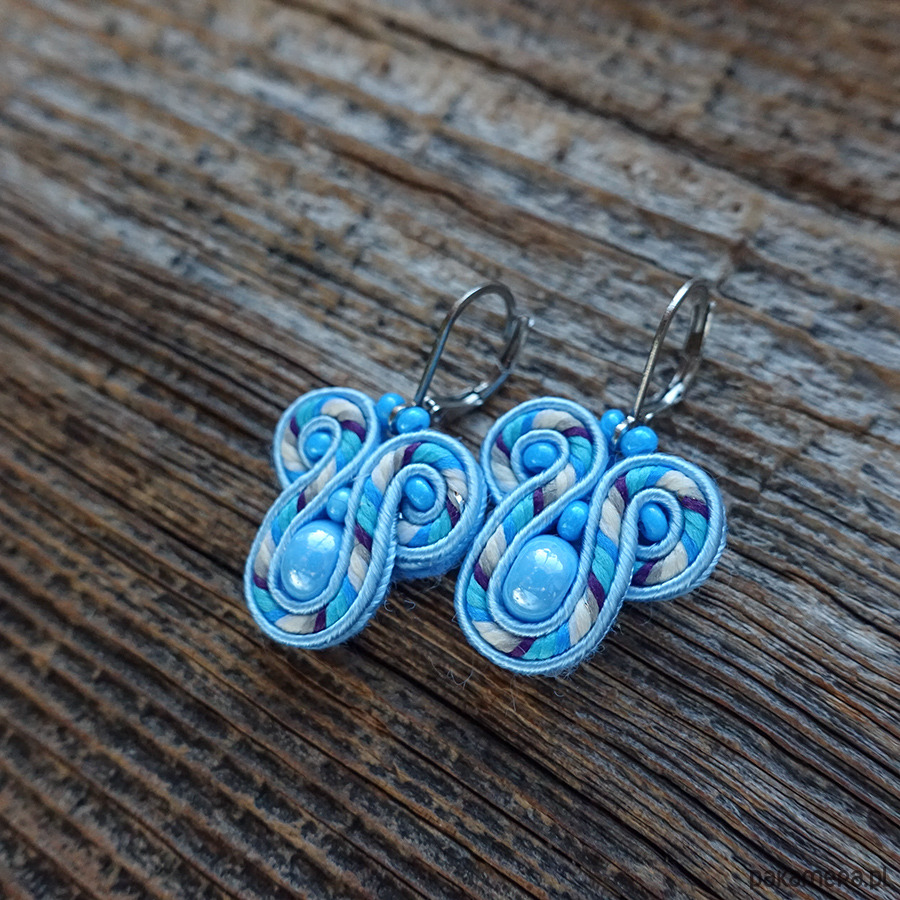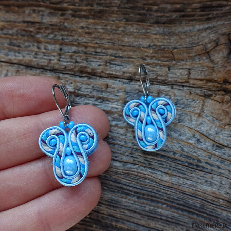 Delikatne kolczyki wykonane metodą haftu soutache.