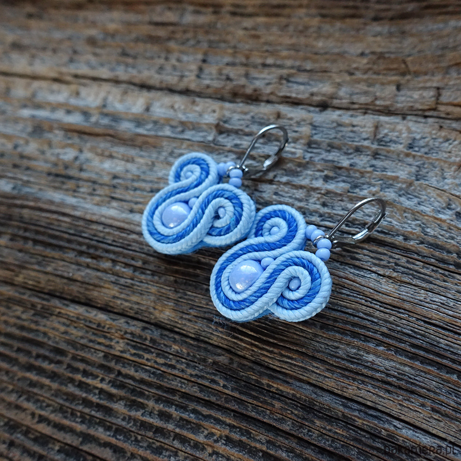 Delikatne kolczyki wykonane metodą haftu soutache.