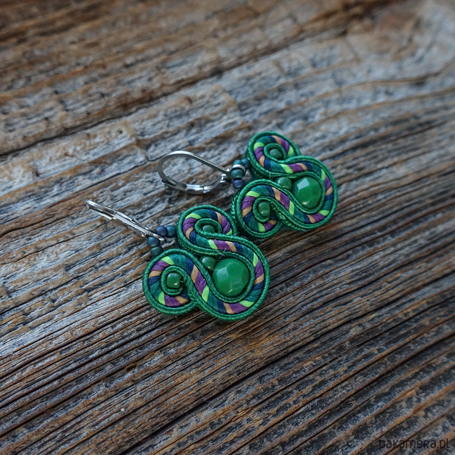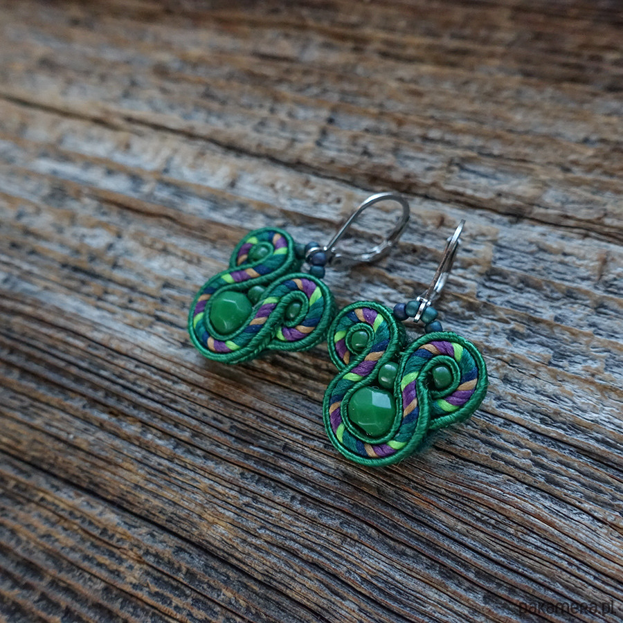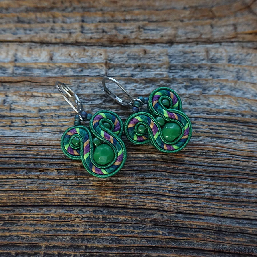 Delikatne kolczyki wykonane metodą haftu soutache.