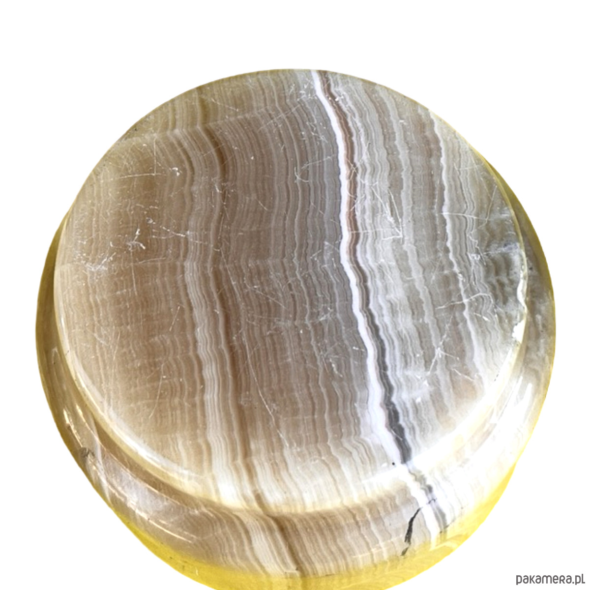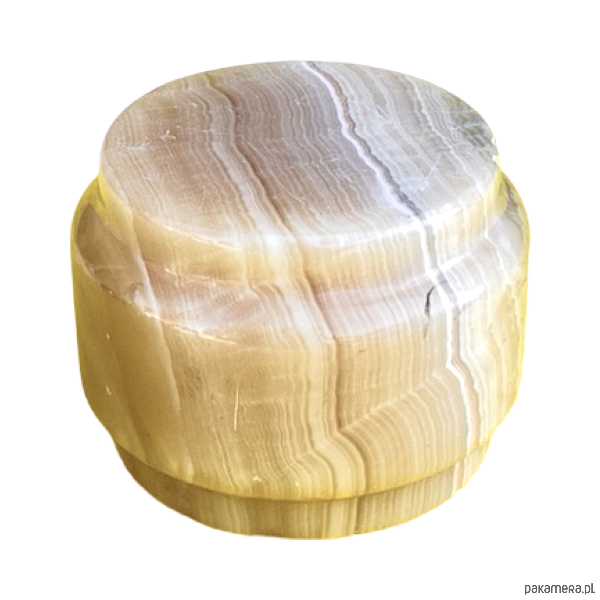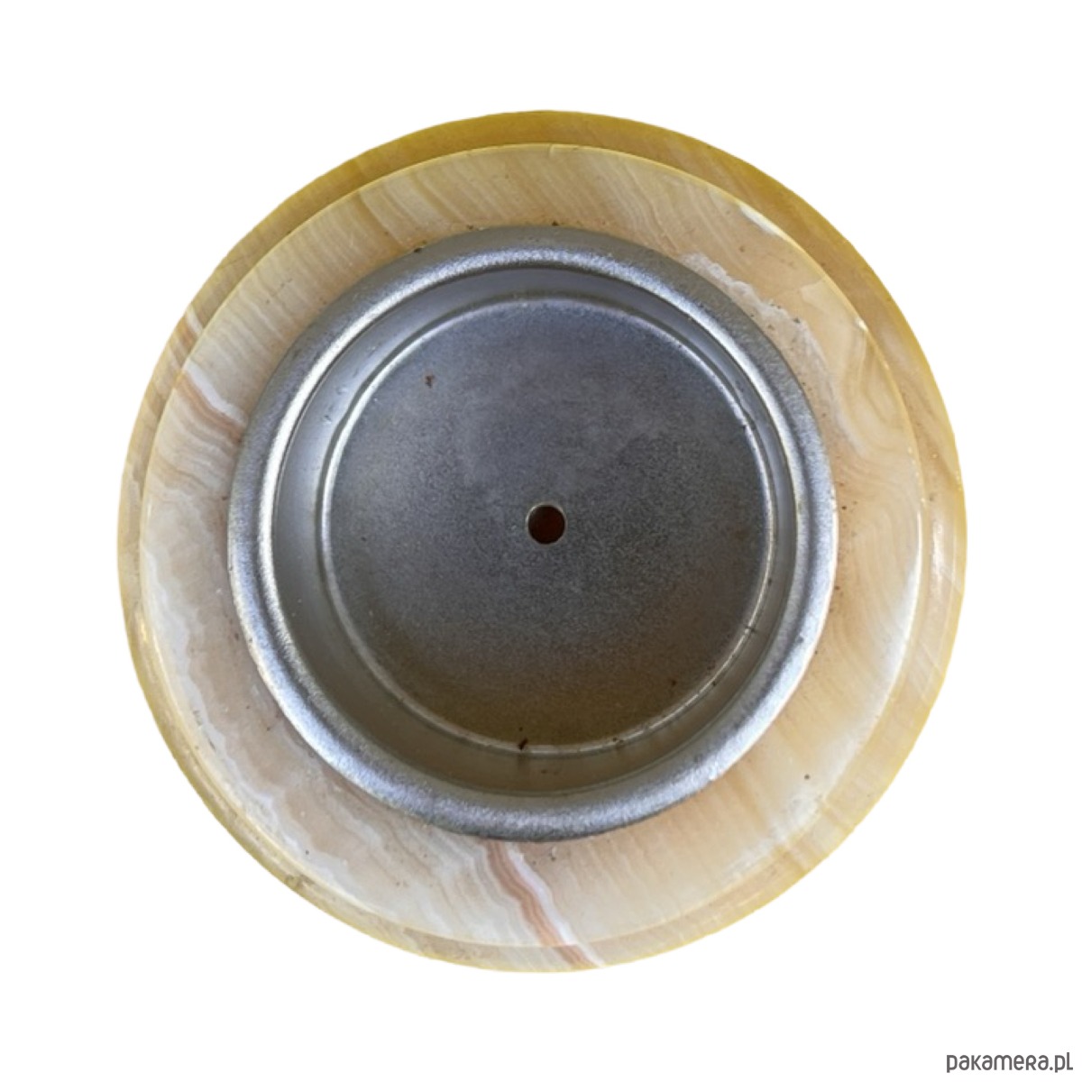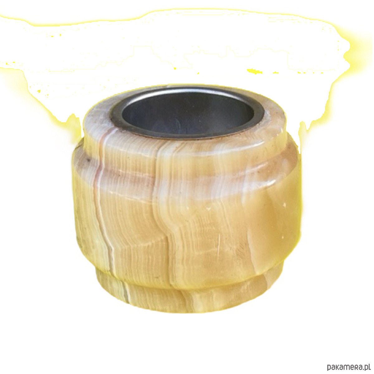 Mały, elegancki świecznik wykonany z jednego kawałka toczonego alabastru pochodzi z Włoch z lat 70. XX wieku. Alabaster w pięknym wybarwieniu. Kamień okuty w stalowe ramę z miejscem na świecę tealight. Przedmiot został wykonany ręcznie i jest zachowana w stanie dobrym, nosi niewielkie ślady użytkowania.
