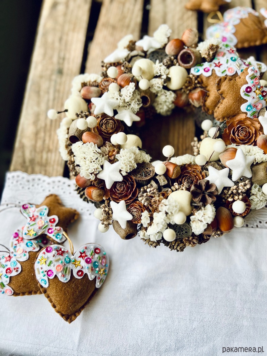 Mały bożonarodzeniowy słodziak i zestaw sześciu filcowych "pierniczków.