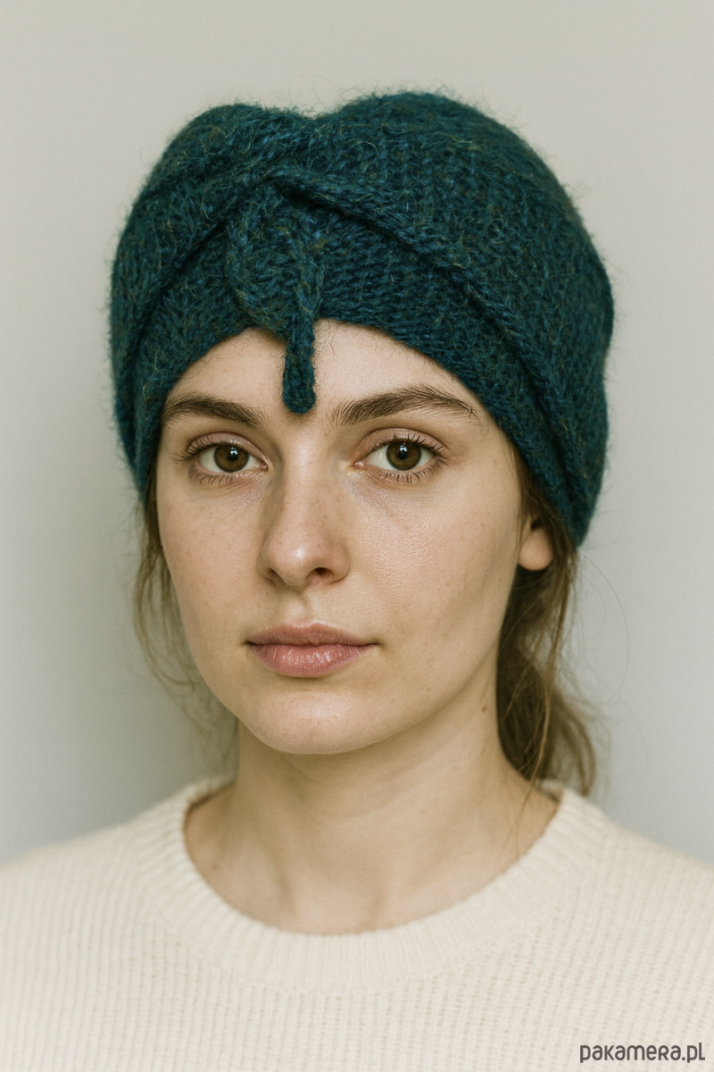 Co ważne – ten model jest wyjątkowo wszechstronny. Można zawiązać go również na głowie jak szeroką opaskę–turban zamiast czapki, tworząc stylowy i modny akcent, idealny na chłodniejsze dni.