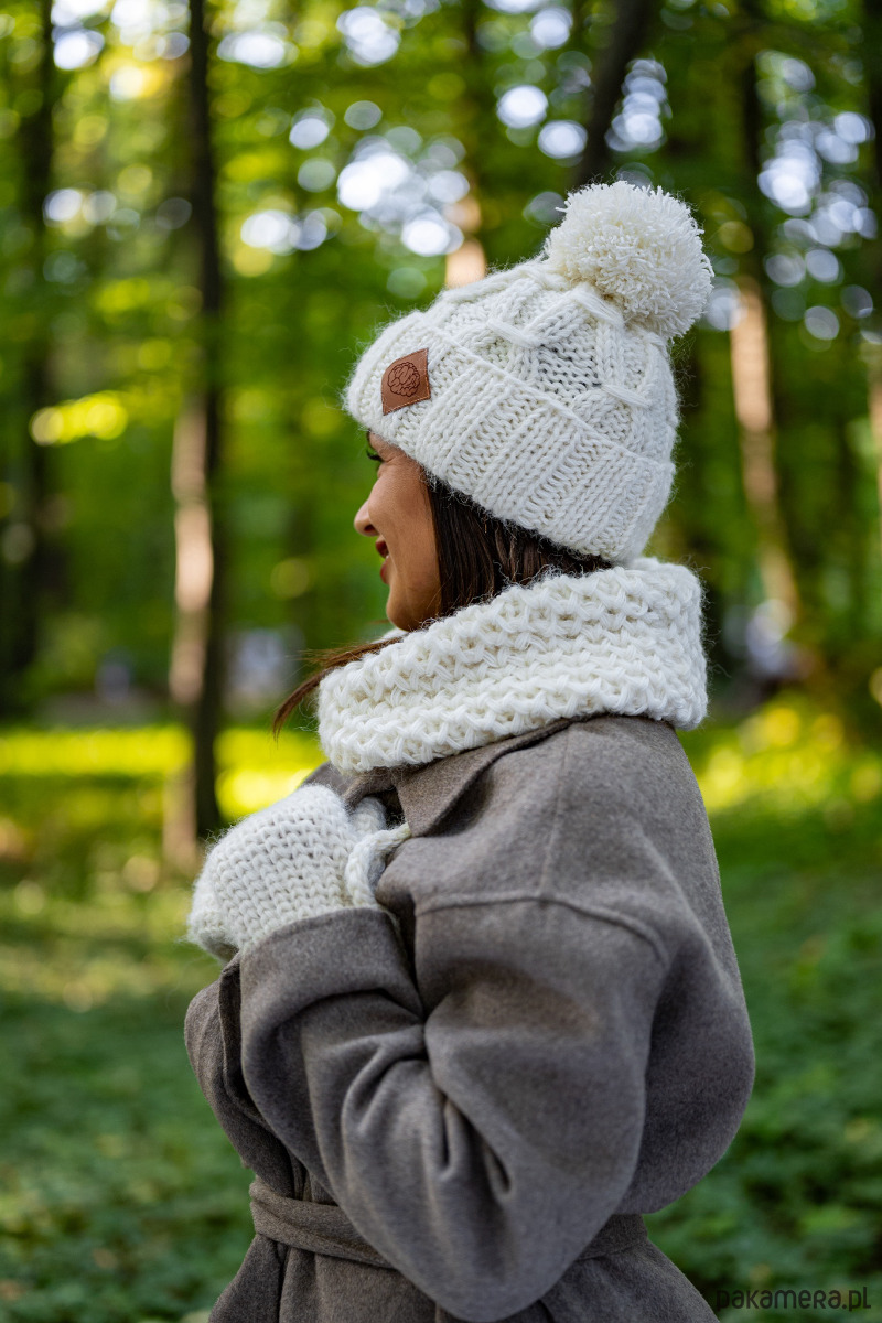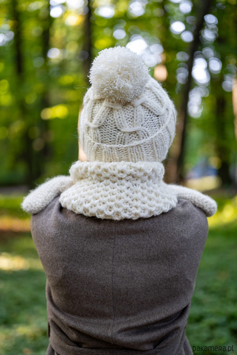 Ręcznie robiony przez poznańskie Seniorki z przędzy premium – 86% merino, 11% alpaki i 3% jedwabiu. Ta mieszanka to ciepło, miękkość i duża dawka luksusu w codziennej formie.