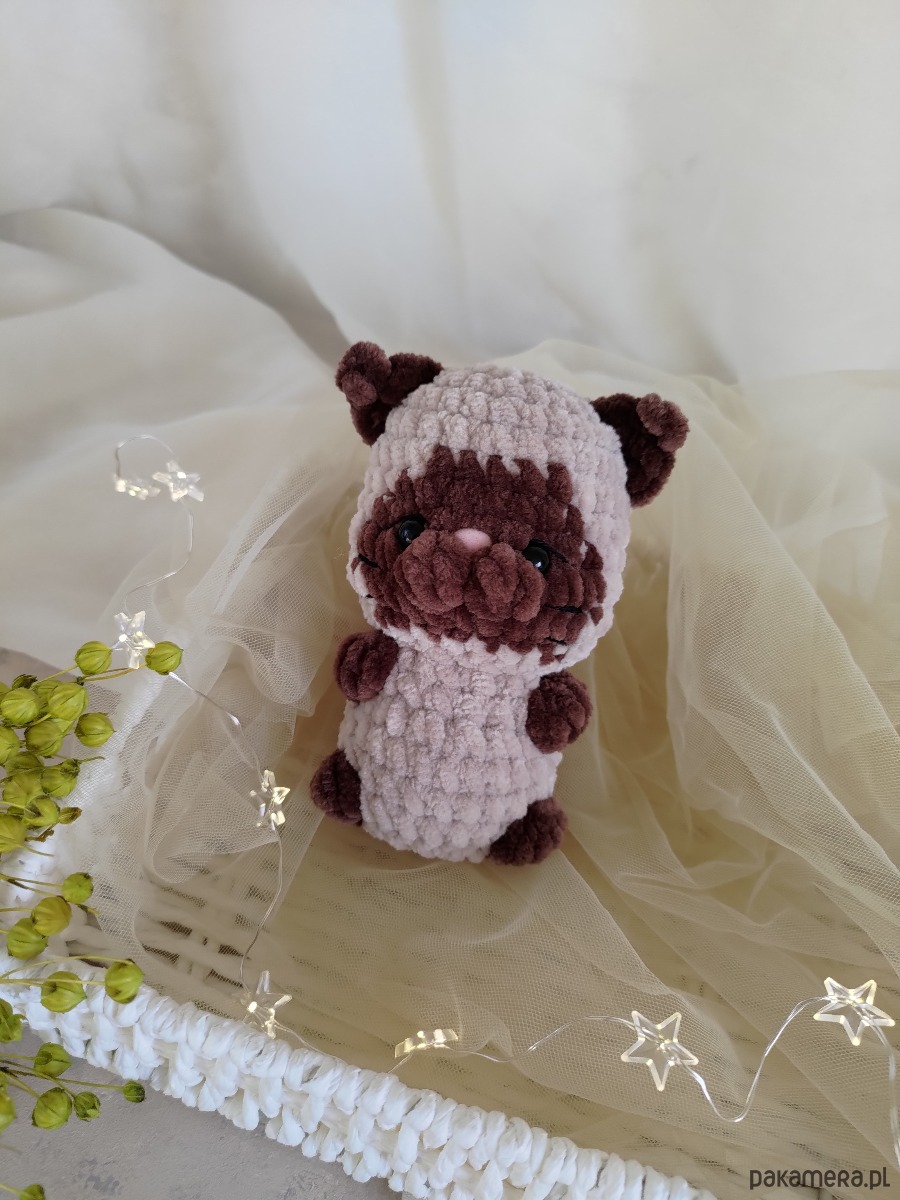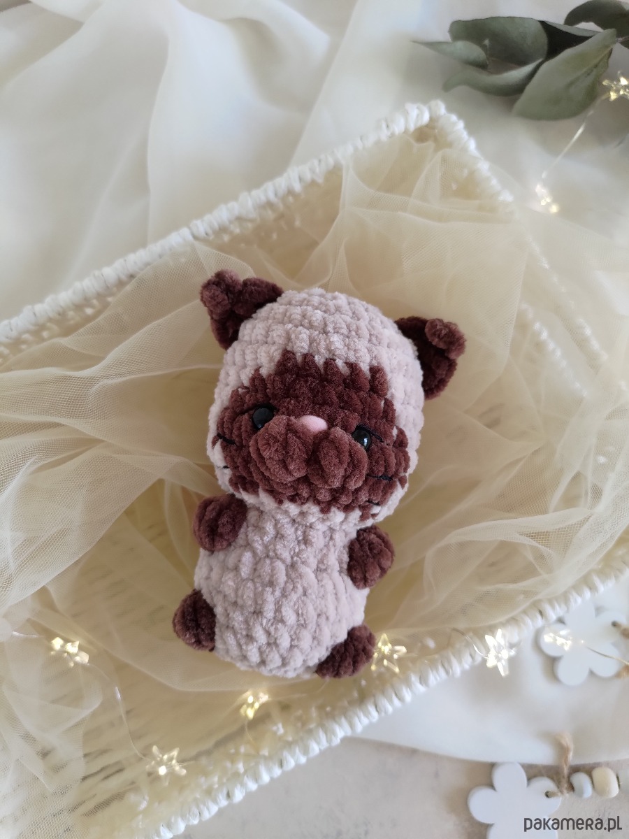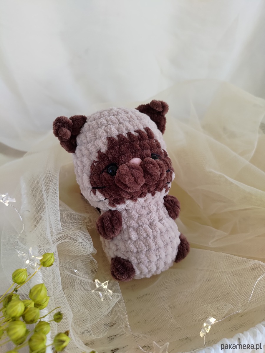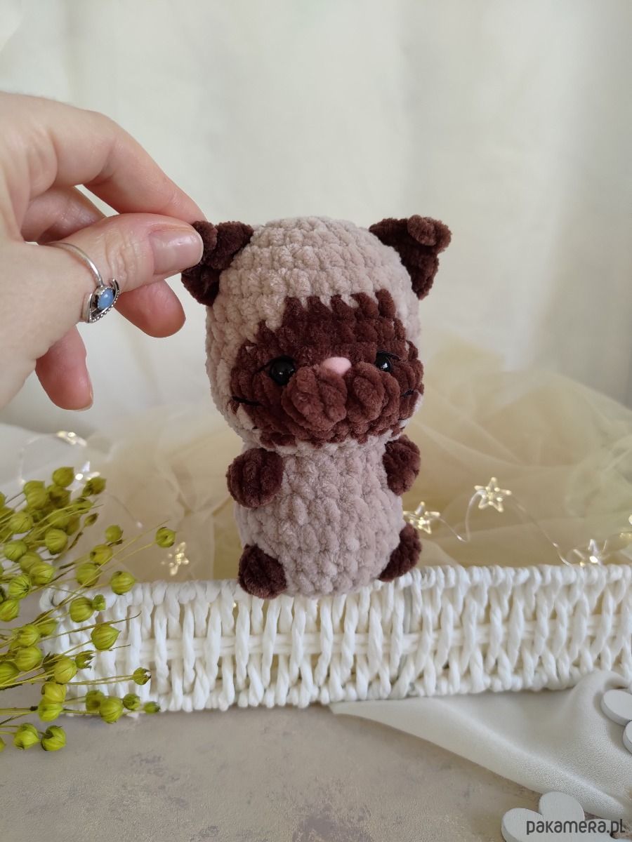 - Kotek jest ręcznie wykonany z miękkiej hipoalergicznej włóczki.