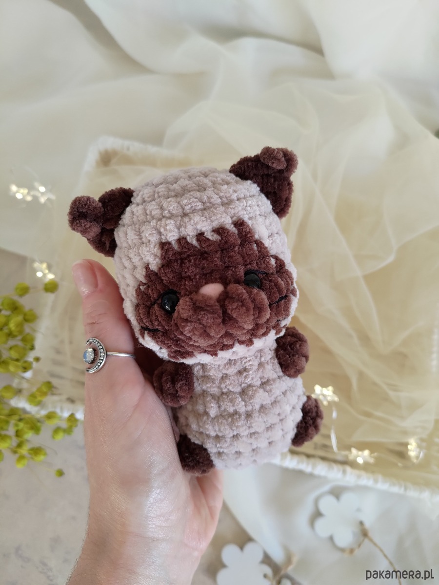 - Maskotka ma małe czarne plastikowe oczy i nosek na bezpiecznym mocowaniu.