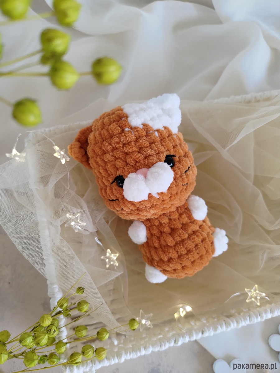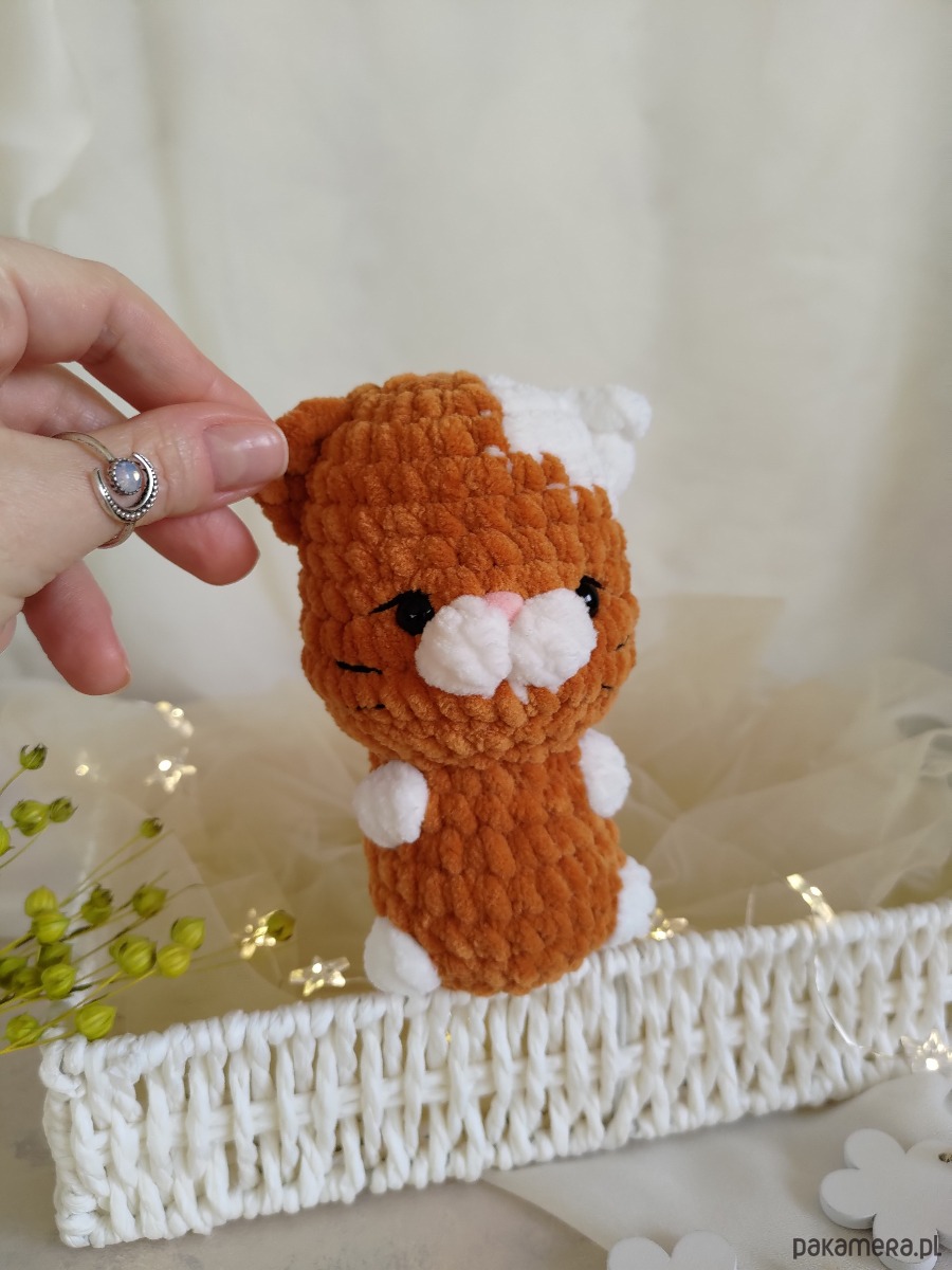 - Kotek jest ręcznie wykonany z miękkiej hipoalergicznej włóczki.