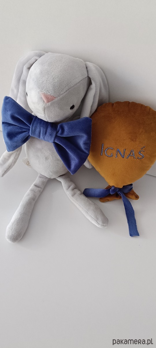 Króliczek 30 cm -pamiątka narodzin, chrztu haft prezent